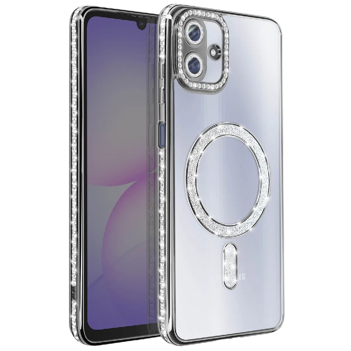 Avizar Coque pour Galaxy A07 Compatible MagSafe avec Contour Strassé Noir |