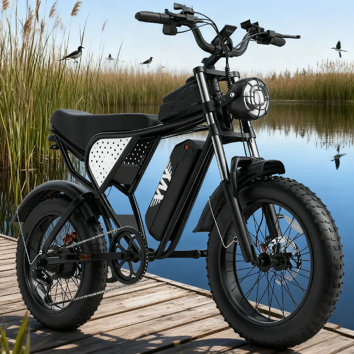 Doté dune double suspension (avant et arrière) et de pneus larges 20x4.0 pouces, il absorbe efficacement les chocs et les vibrations. Ces caractéristiques assurent une conduite fluide et confortable sur la neige, le sable, les routes bosselées ou les sentiers de montagne, adaptant parfaitement à toutes les aventures outdoor et aux trajets quotidiens.