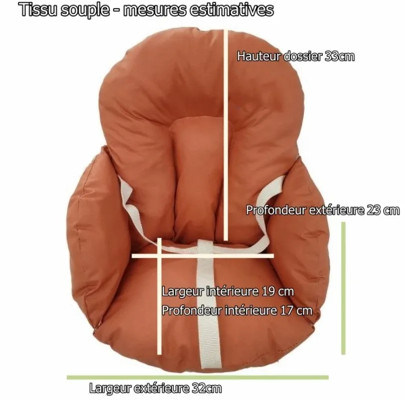 Le maintien reste stable pendant les repas grâce à une assise moelleuse en fibre polyester et à une forme enveloppante qui soutient le corps de bébé. La surface en polyuréthane se nettoie facilement, ce qui aide à garder l'espace de repas hygiénique au quotidien. Les sangles de maintien limitent le glissement et participent à une position bien calée dans la chaise. Les arêtes arrondies pour limiter les points d'accroche apportent une attention supplémentaire aux gestes du quotidien. L'ensemble vise à rendre l'installation rapide, l'usage régulier et l'entretien simple pour les parents.