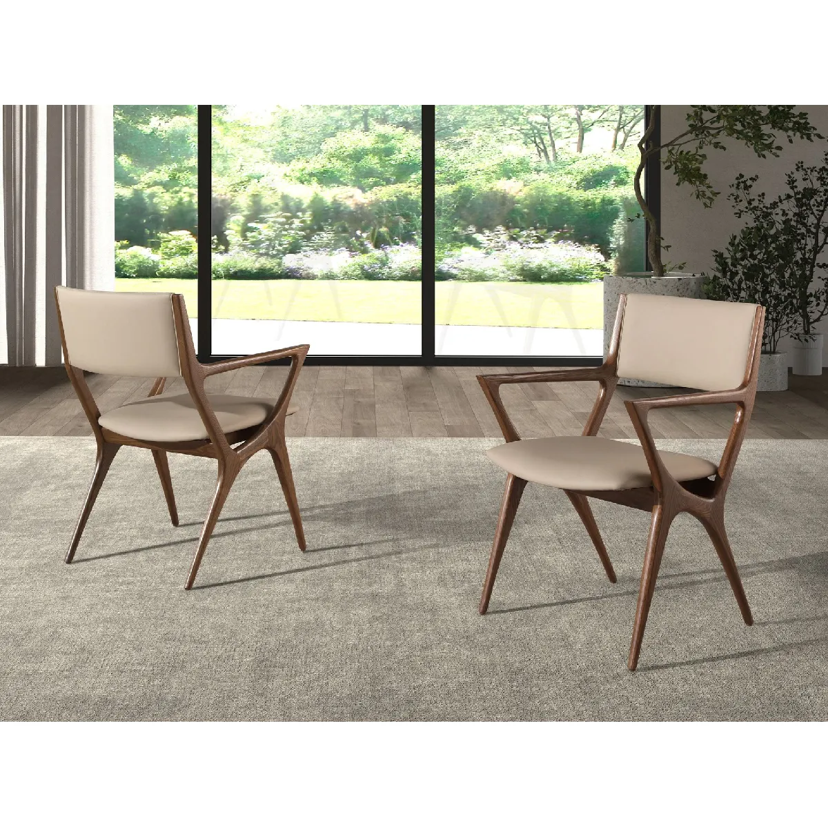 Chaise avec accoudoirs au design moderne, dont l'assise et le dossier sont revêtus de similicuir vison. Ses pieds en bois couleur noyer, d'un style avant-gardiste mais intemporel, en feront un élément incontournable de votre cuisine ou de votre salle à manger. Cette chaise d'Angel Cerdá allie le style unique et personnel de la marque, ainsi que le plus grand confort et la plus grande stabilité, grâce à la haute qualité de son rembourrage et à la structure originale de ses pieds.