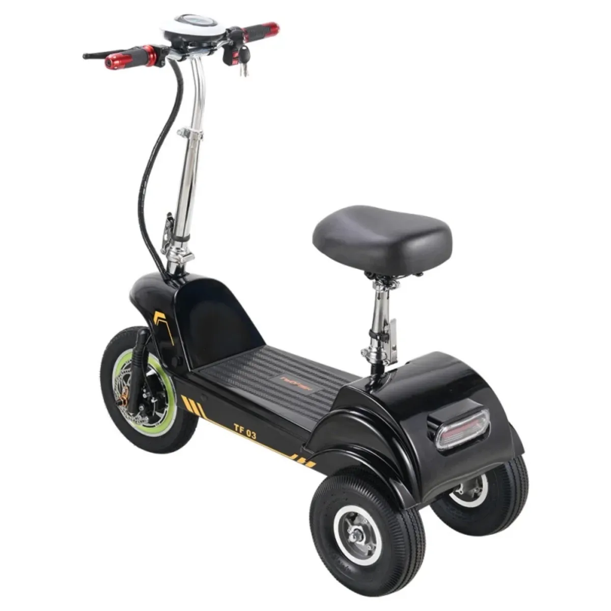 Équipé d'un pneu avant de 12 pouces, de deux pneus arrière de 10 pouces et d'une suspension avant à ressort, le TF03 absorbe les irrégularités de la route et assure une conduite confortable et stable en ville.