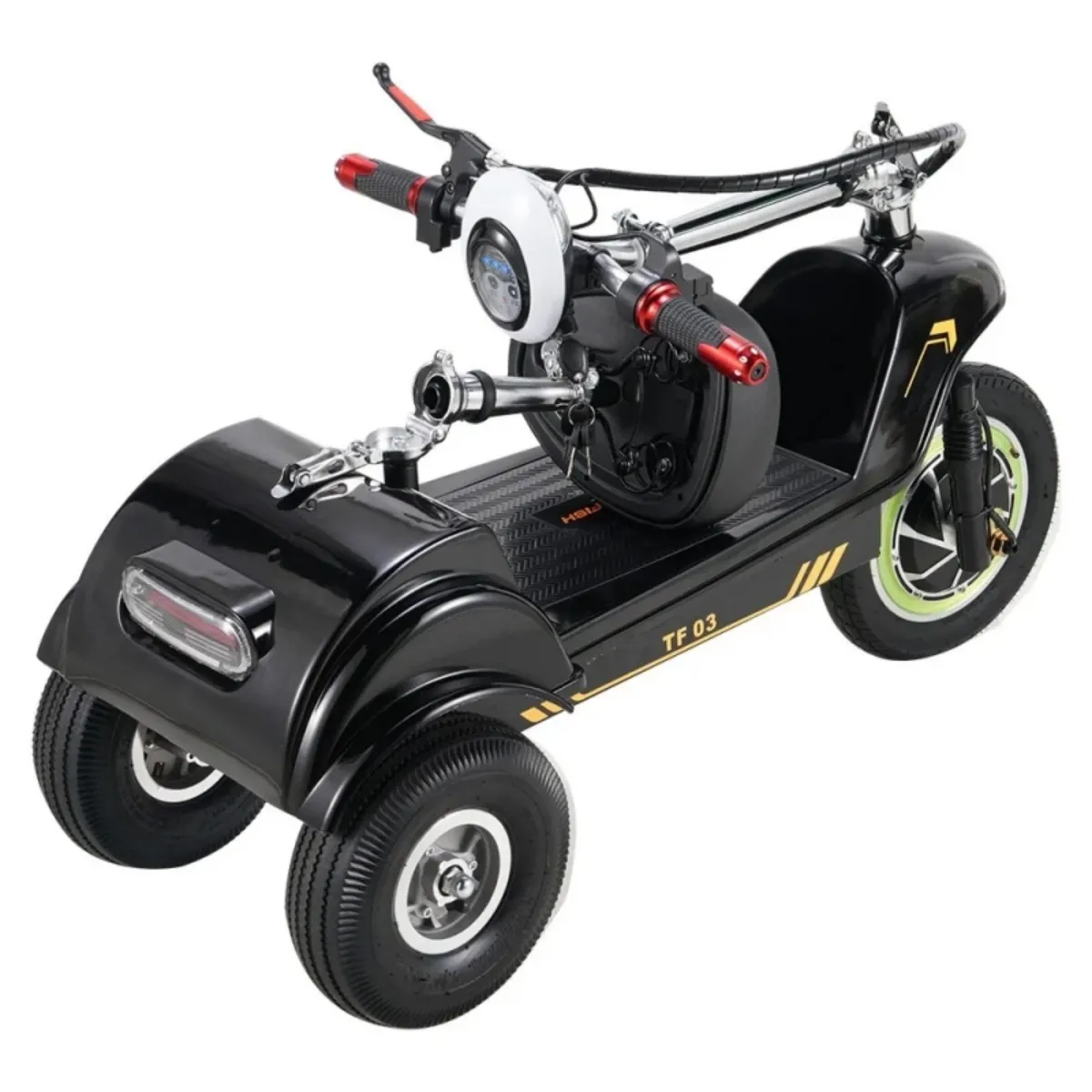 Grâce à sa structure à une roue avant simple et une roue arrière double, le TF03 offre un excellent équilibre et une grande stabilité. Il est particulièrement adapté aux débutants, aux seniors et aux cyclistes qui ont besoin de plus d'assurance en ville.