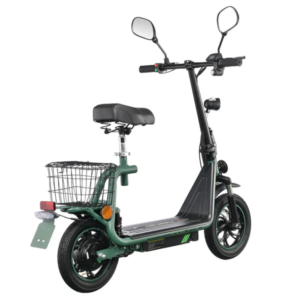 Un phare avant ultra-lumineux, un feu arrière de signalisation et deux rétroviseurs améliorent la sécurité et la visibilité nocturnes. Son cadre pliable facilite le transport et le rangement. Un panier arrière amovible offre un espace de rangement supplémentaire pratique pour les courses, les sacs et les objets du quotidien.