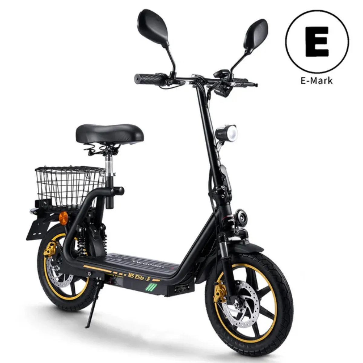Trottinette électrique pliable TWOFISH M5 Elite-E, 14 pouces, avec siège et panier arrière - Noire