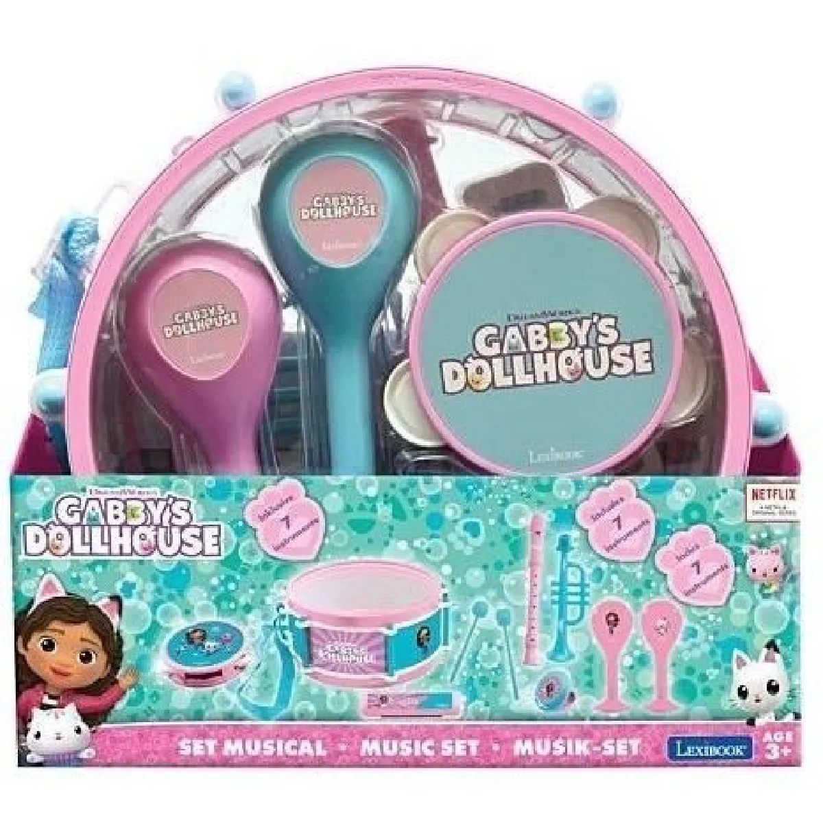 Type de produit : IMITATION INSTRUMENT MUSIQUE - Lexibook - Set Musical Gabby et la Maison Magique - 7 instruments - Rangement dans le tambour