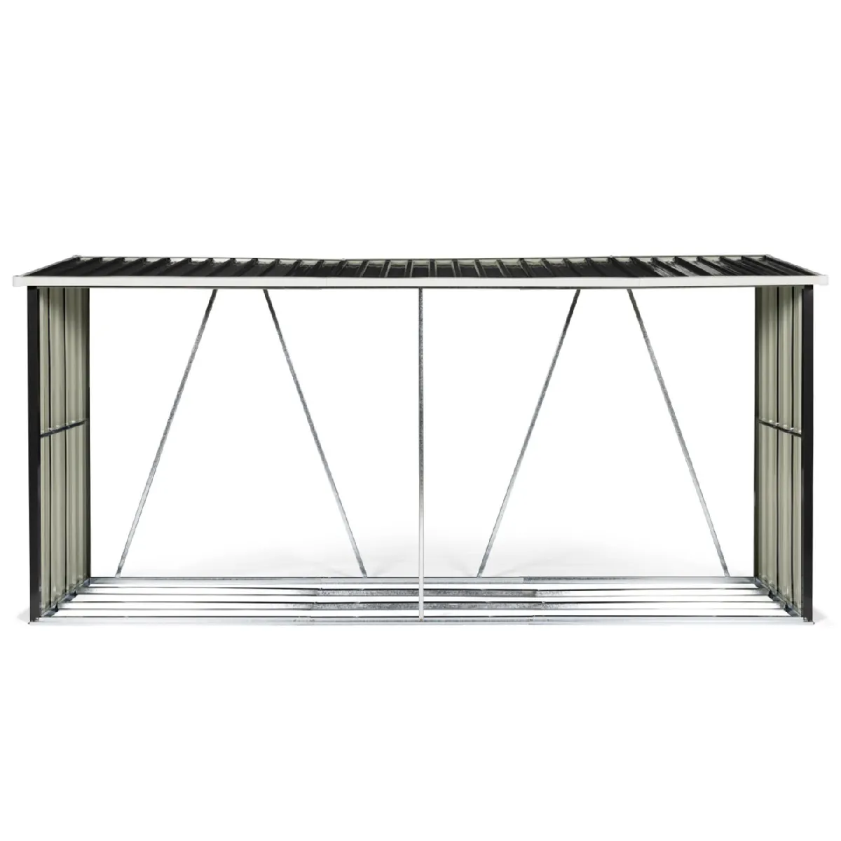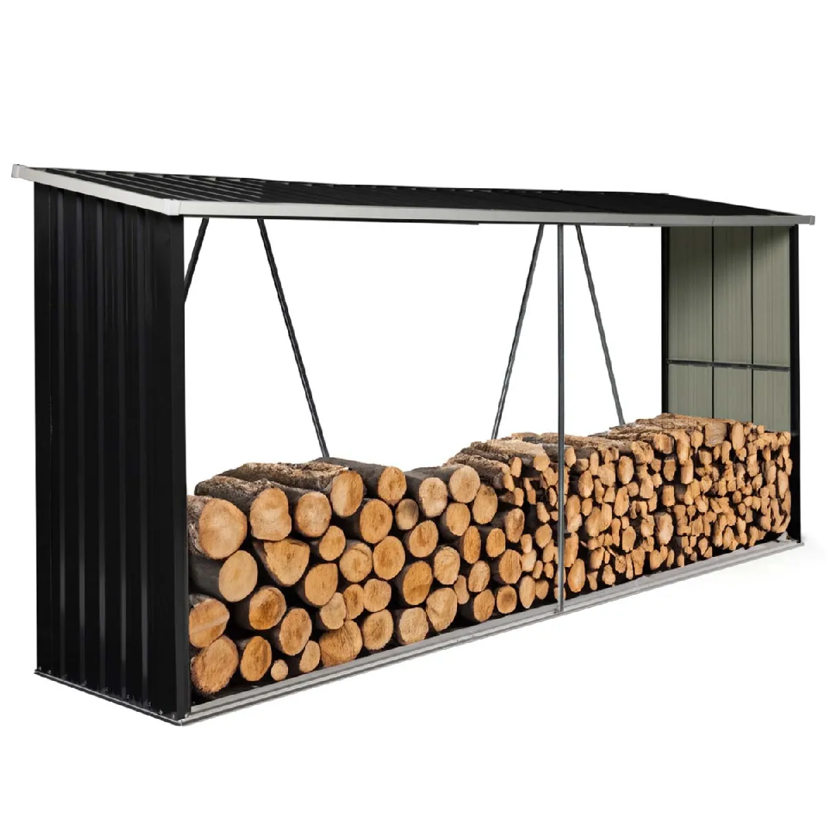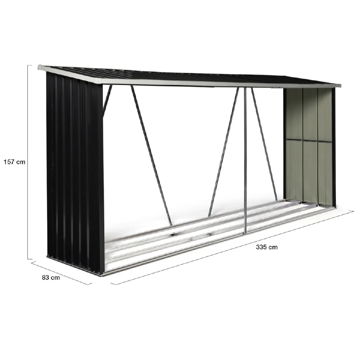 Conservez durablement votre bois de chauffage grâce à notre abri de stockage pour bûches de 4 m³. Bien plus qu'un simple espace de stockage, il est idéal pour protéger vos stères de l'humidité. Stable et robuste, cet abri de stockage en acier galvanisé est équipé de 4 barres de renfort à l'arrière ainsi que d'une autre à l'avant pour solidifier l'ensemble et d'un toit incliné pour protéger votre bois des intempéries. Sa structure aérée assure une ventilation parfaite pour faire circuler l'air de façon à ne pas favoriser les moisissures et autres champignons sur votre bois de chauffage. Son design moderne et épuré s'adaptera parfaitement à tout type de jardin ou d'espace extérieur. Vous préférez l'installer dans un garage ou toute autre pièce de stockage ? Cet abri peut se poser partout tant qu'il dispose d'un sol plat.N'hésitez plus et craquez pour notre abri de stockage 4 m³ gris anthracite en acier galvanisé !Dimensions de l'abri de stockage 4 m³ gris en acier galvaniséDimensions globales : Longueur 335 cm x largeur 83 cm x Hauteur 145/157 cmÉpaisseur de la structure : 0,6 mmÉpaisseur des panneaux : 0,25 mmMatériau : acier galvaniséColoris : gris anthraciteCapacité : 4m³Capacité de 4 stères environ si vos bûches font 1 mCapacité de 5 stères environ si vos bûches font 50 cmCapacité de 6 stères environ si vos bûches font 33 cmÀ monter soi-mêmeCet abri existe aussi en 2m³ ! Découvrez également nos autres abris de jardin sur notre boutique en ligne !