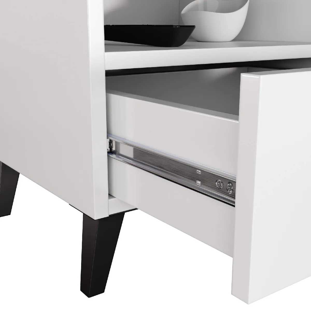 - Tiroir : glissières métalliques à billes pour une coulisse régulière
