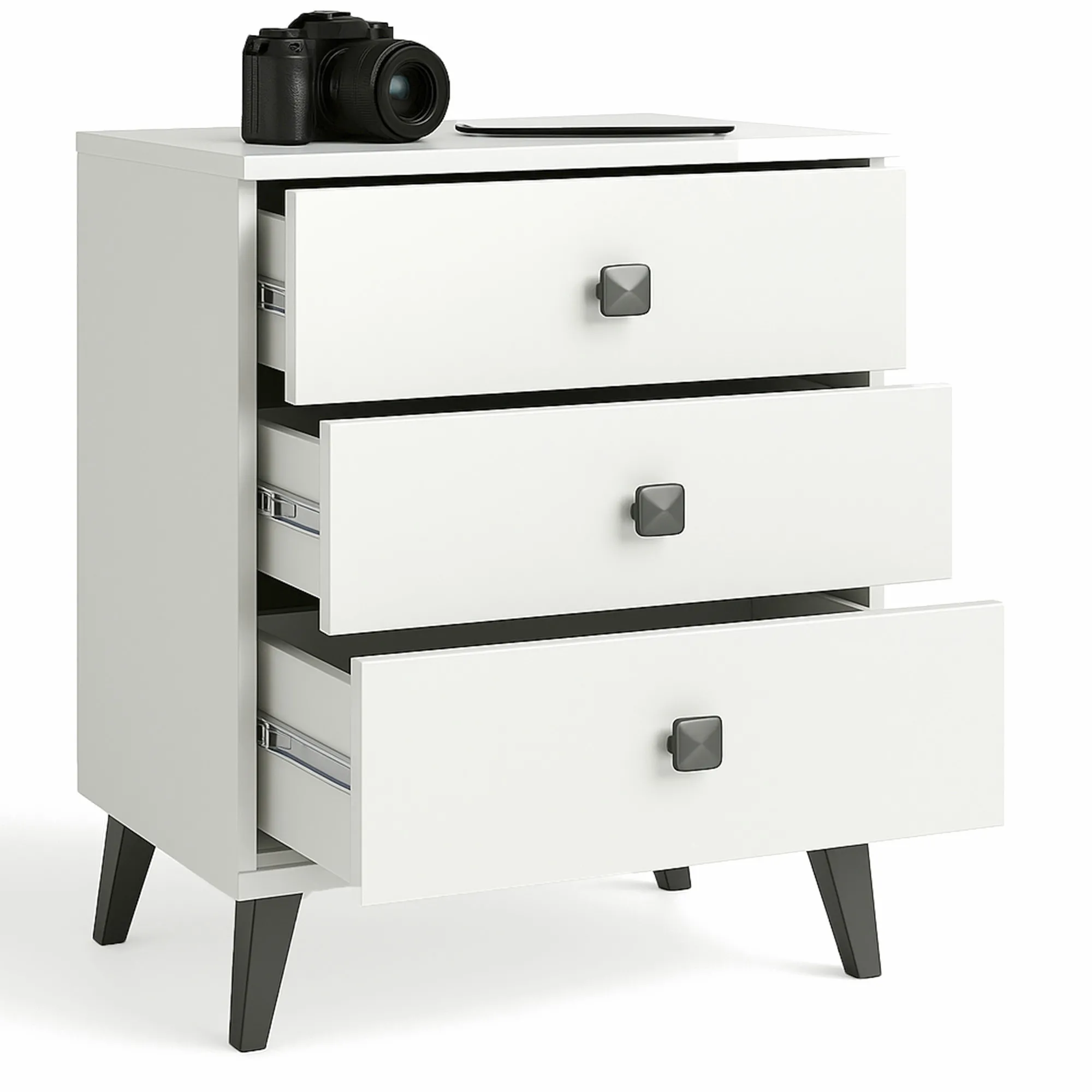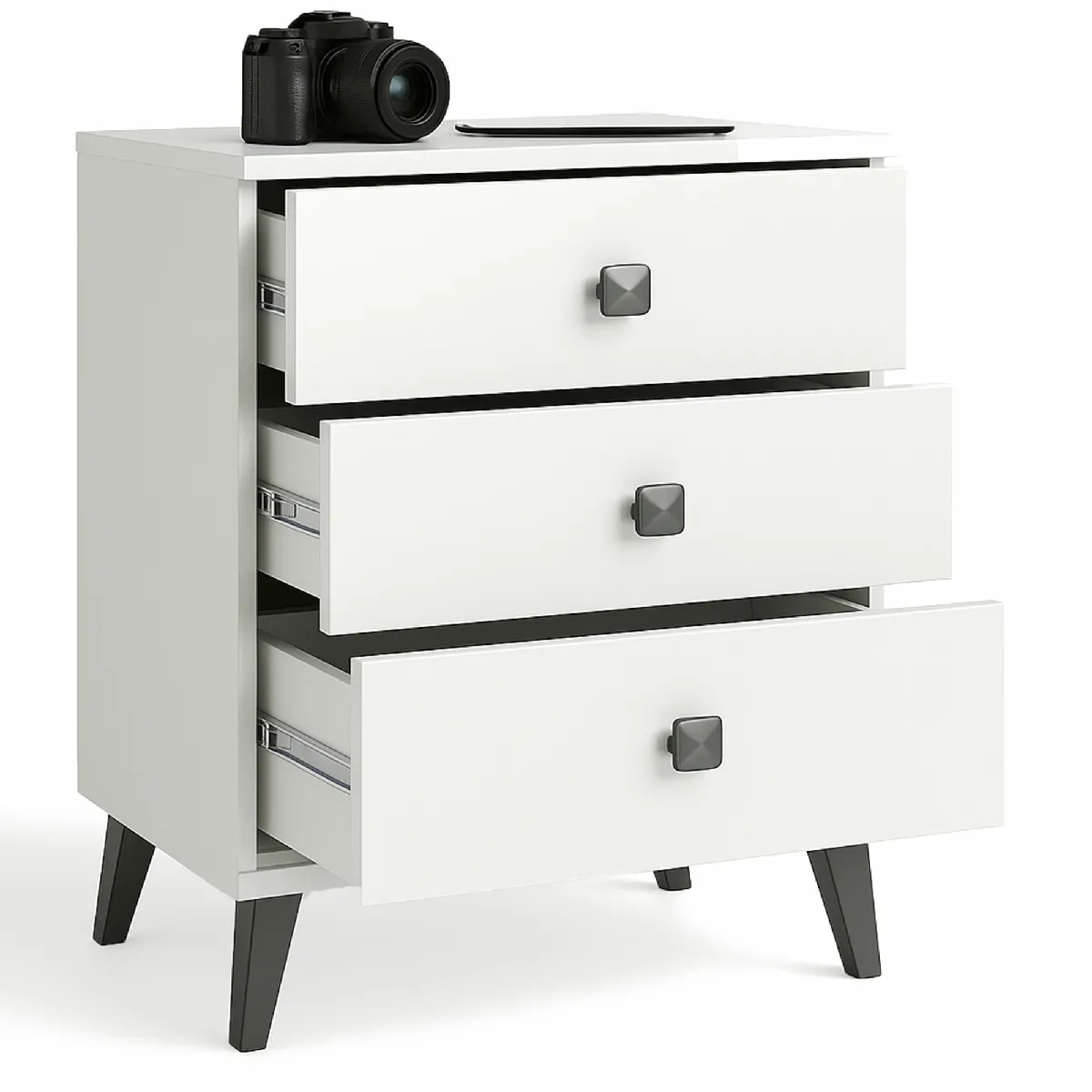 Akord Chevet 3 tiroirs moderne - Blanc |