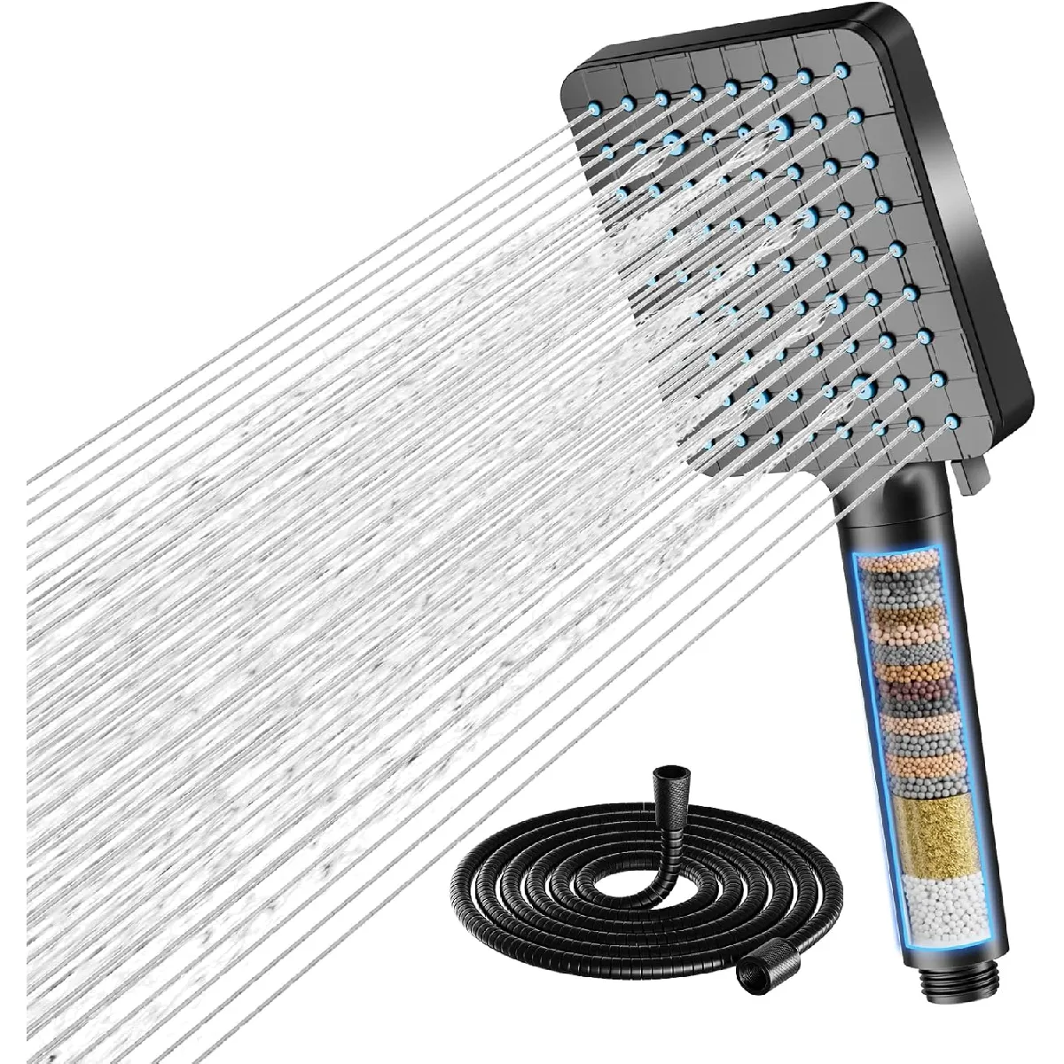 Vendos85 Pommeau de douche carré filtrant 20 étapes – Noir |
