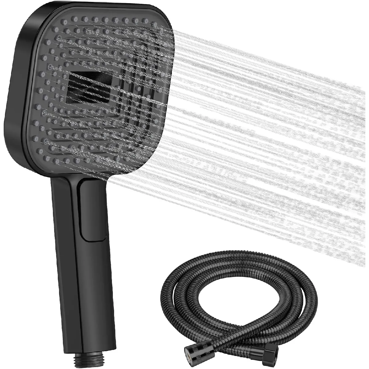 Vendos85 Pommeau de douche carré noir haute pression avec tuyau |