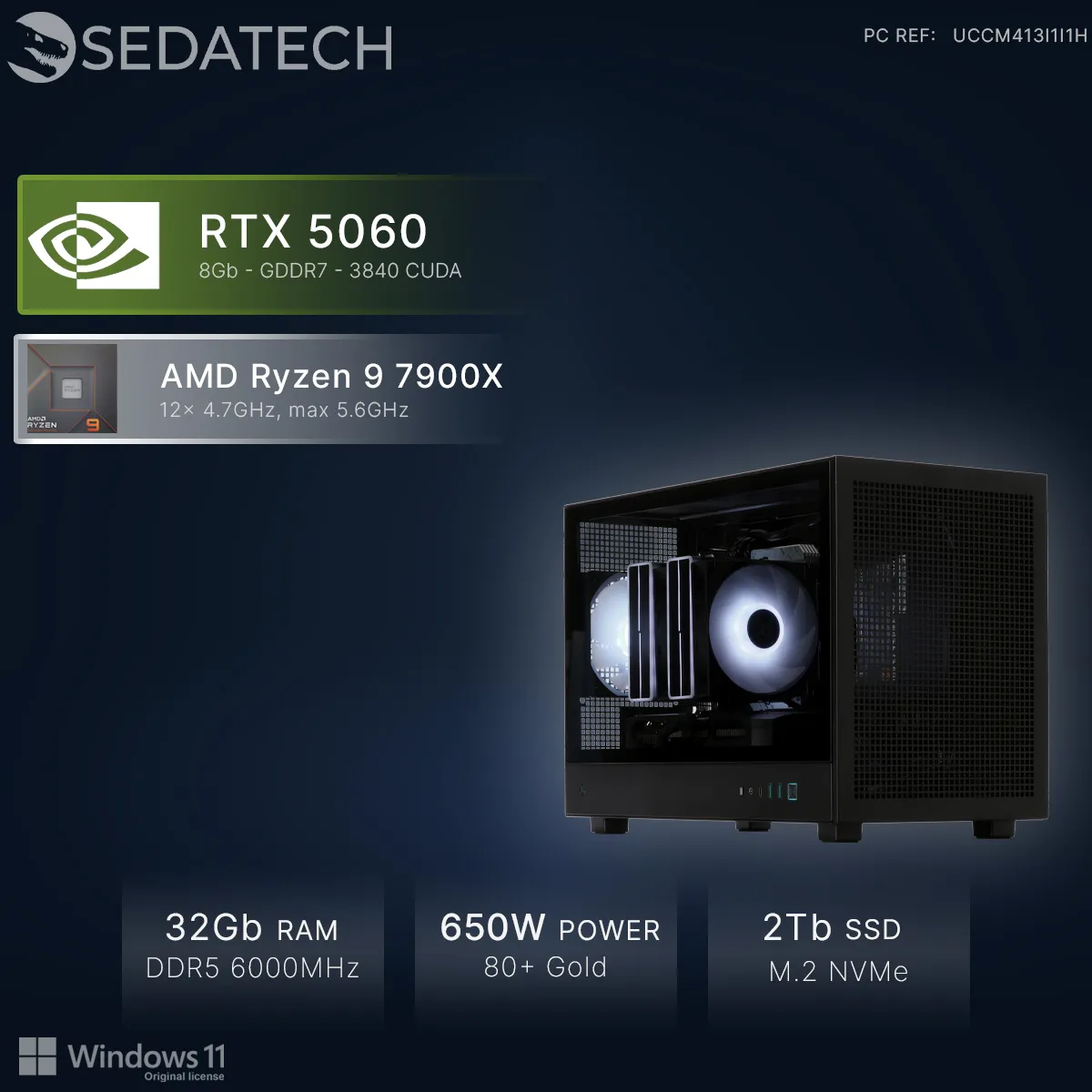 Sedatech PC Gamer Extreme • AMD Ryzen 9 7900X • RTX5060 • 32Go DDR5 • 2To SSD M.2 • Windows 11