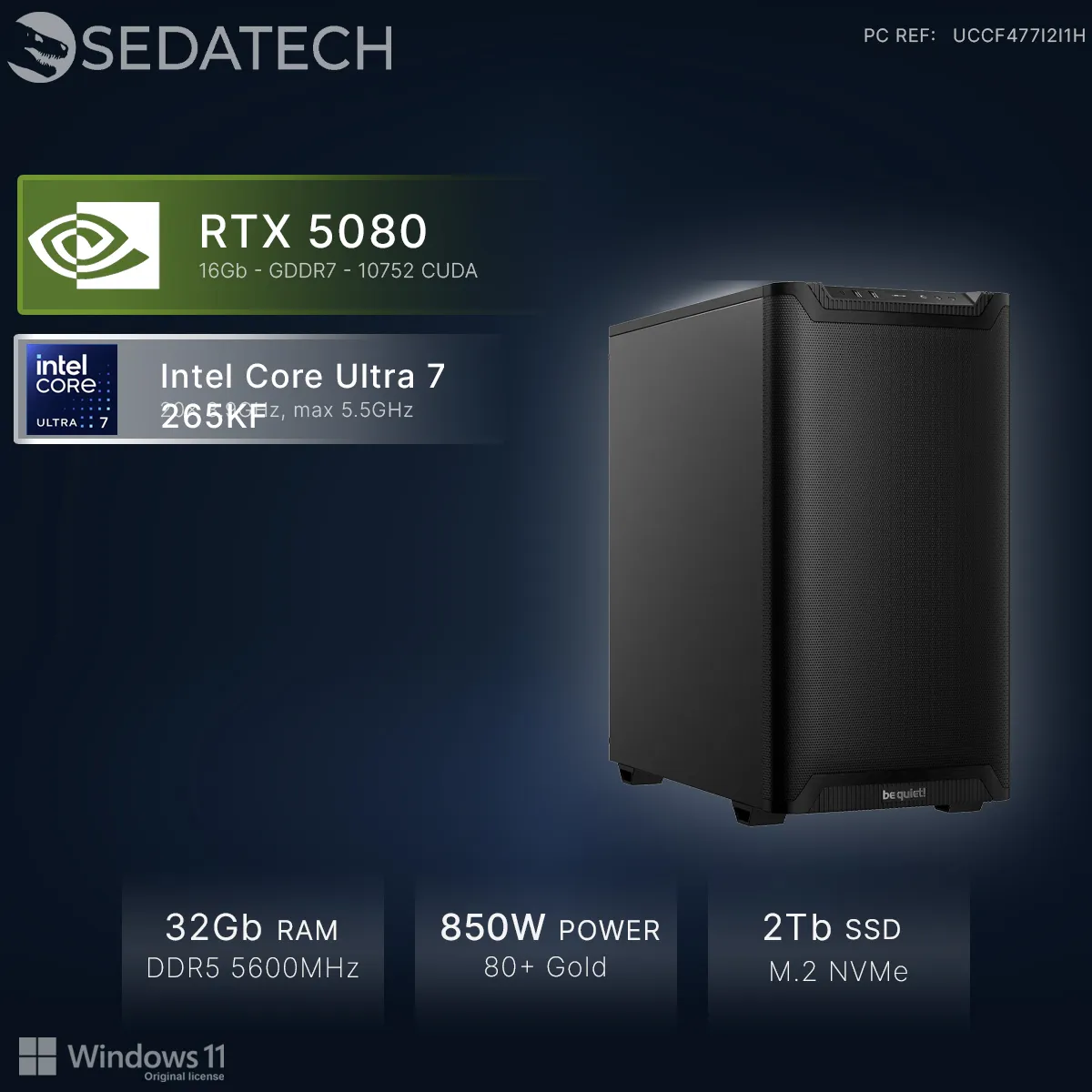 Sedatech PC Gamer, Core Ultra 7 265KF, RTX5080, 32Go DDR5, 2To SSD, Win 11