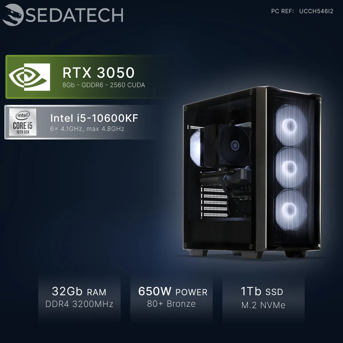 Sedatech PC Gamer Compact • Intel i5-10600KF • RTX3050 • 32Go RAM • 1To SSD M.2 • sans OS |