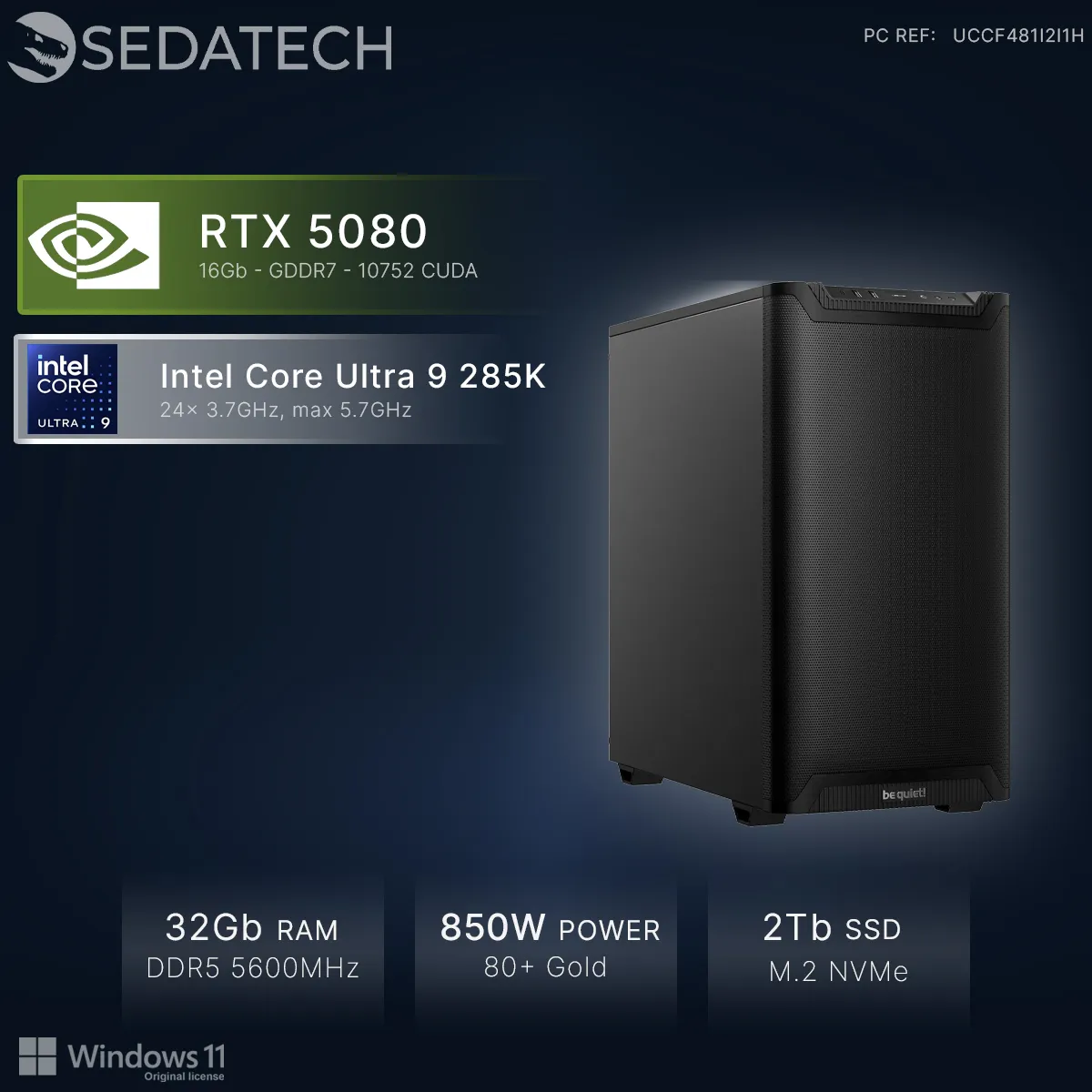 Sedatech PC Gamer Silent Quiet + Airflow • Intel Core Ultra 9 285K • RTX5080 • 32Go DDR5 • 2To SSD M.2 • Windows 11