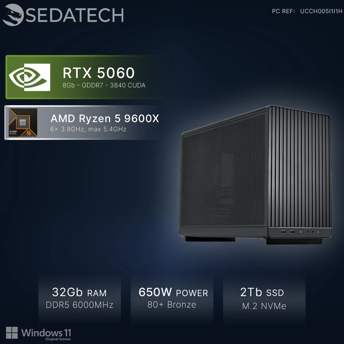 Sedatech Mini-PC Gamer, AMD Ryzen 5 9600X, RTX5060, 32Go DDR5, 2To SSD, Win 11