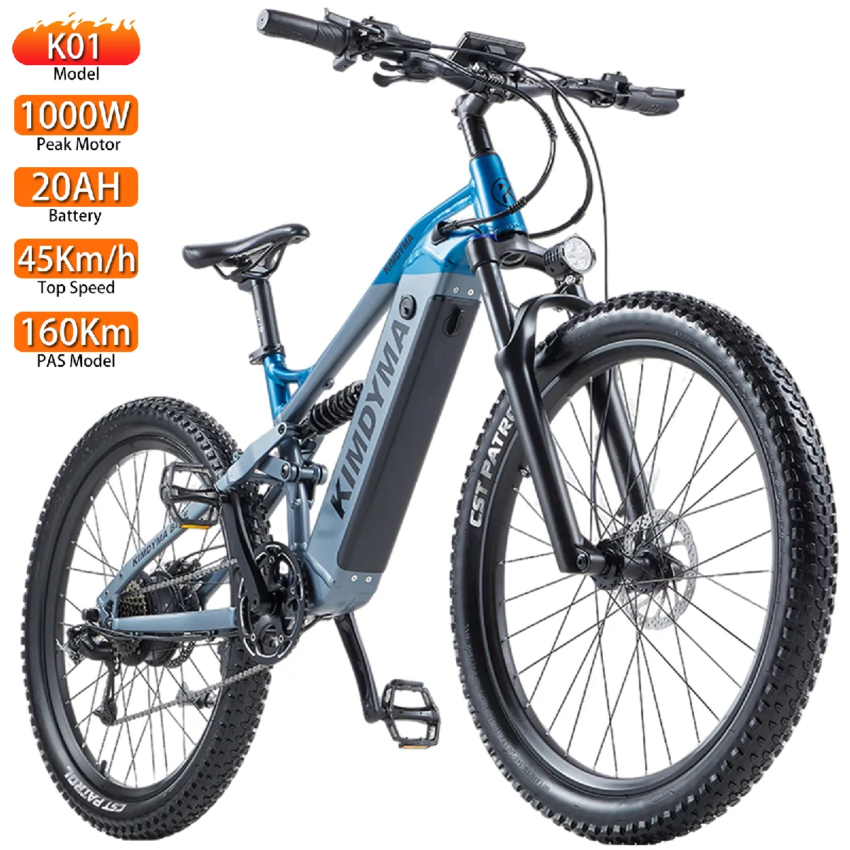 Vélo électrique Tout Terrain KIMDYMA 27,5" Moteur 1000W Vélo électrique Adulte 48V 20AH Autonomie Max 160Km Charge Max 150Kg K01