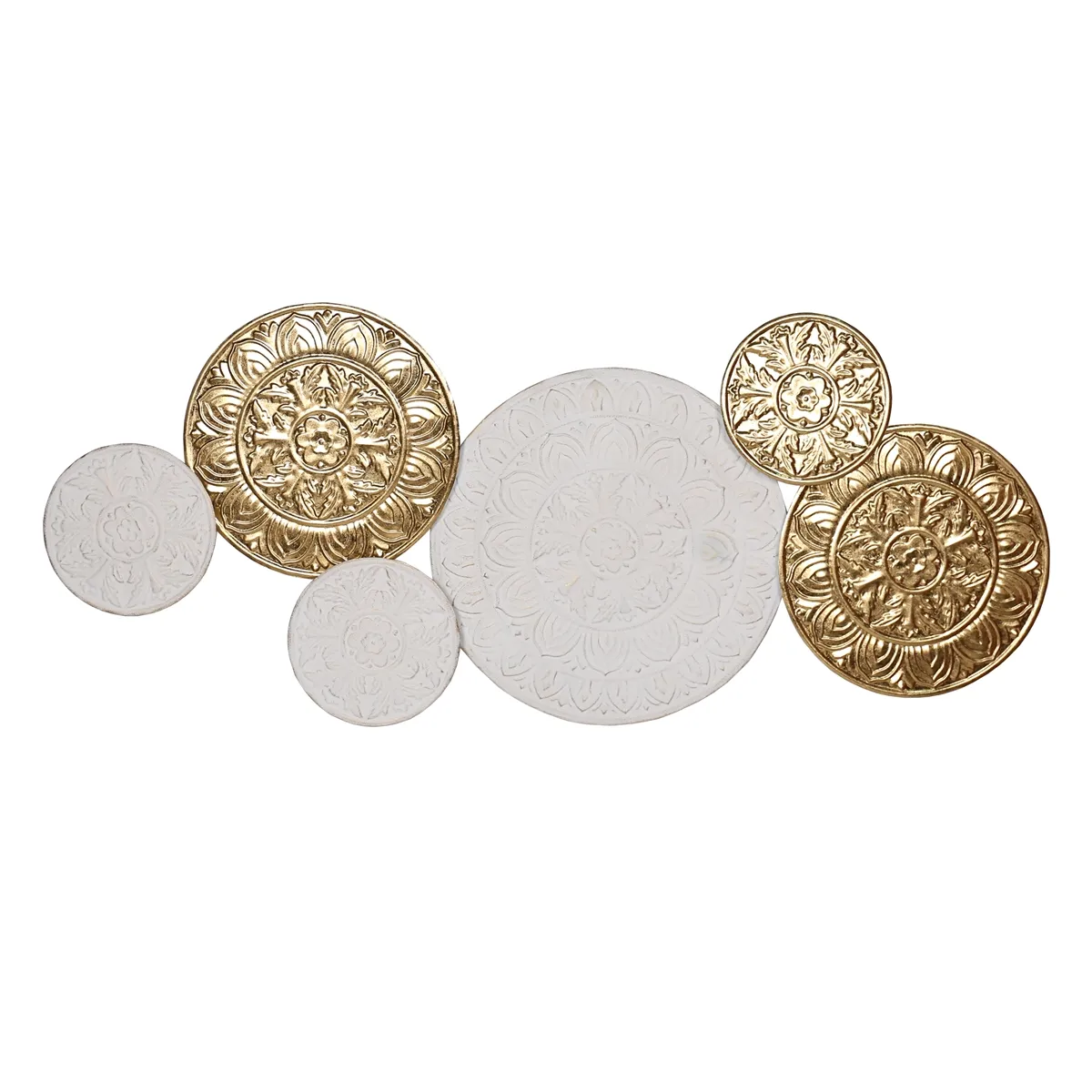 Alexandra House Living Panneau métallique Mandalas Blanc/Or 138 x 60 cm 138 x 60 x 4,5 cm |