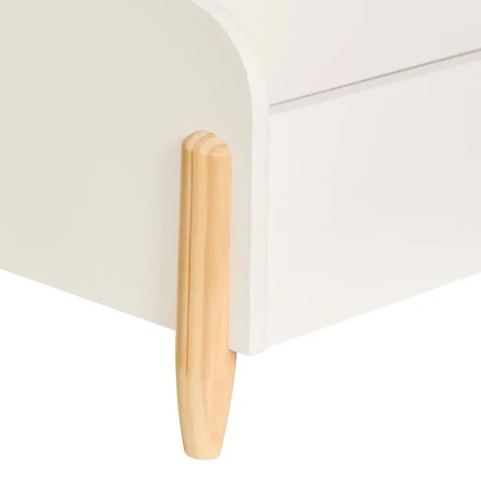 Le design blanc, uni et posé sur pieds, s'accorde facilement avec une décoration douce et minimaliste. Les bords et la silhouette organique limitent l'aspect massif pour un rendu visuel plus léger. Le montage se fait par l'utilisateur, ce qui permet d'installer le coffre rapidement à l'endroit souhaité. Pensé pour un usage quotidien, il combine rangement pratique et esthétique sobre dans une chambre d'enfant ou une salle de jeux.