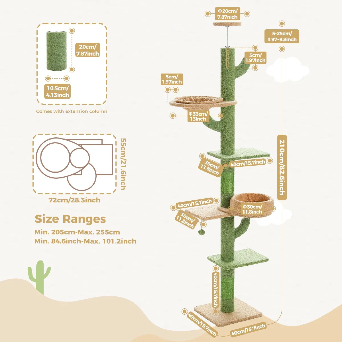 PAWZ Road Arbre à Chat Cactus du Sol au Plafond 205-255 cm |