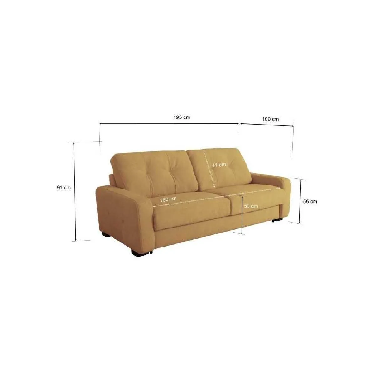 DUNLOPILLO SOAA23023922 Canapé convertible 3 places tissu gaufré ocre 215x100x91 cm |