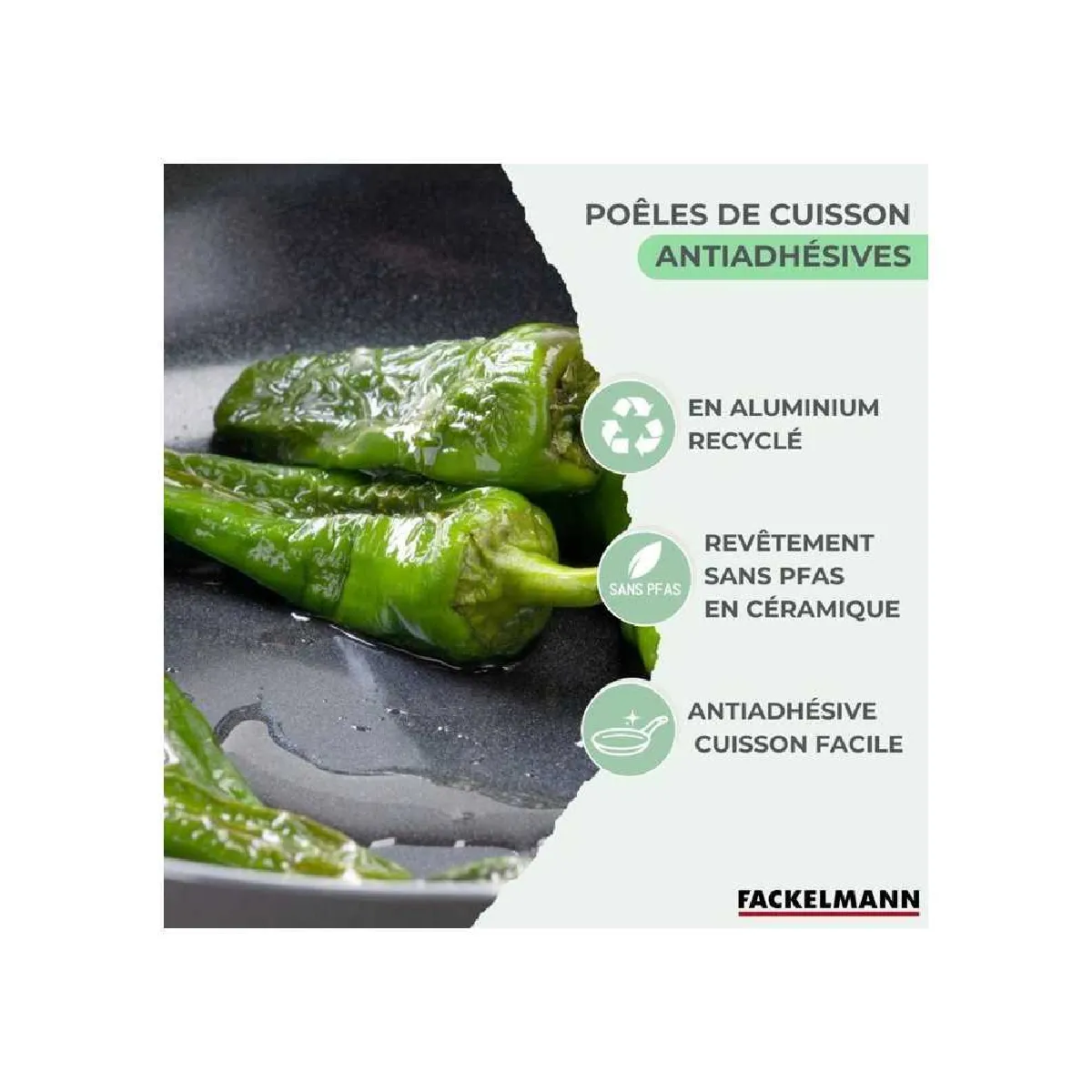Set de 2 poêles Fackelmann Brandao Ø20/Ø24 cm en aluminium recyclé, revêtement céramique antiadhésif sans PFAS, poignées fixes ergonomiques aluminium/bakélite, compatibles induction et autres feux, couleur vert
