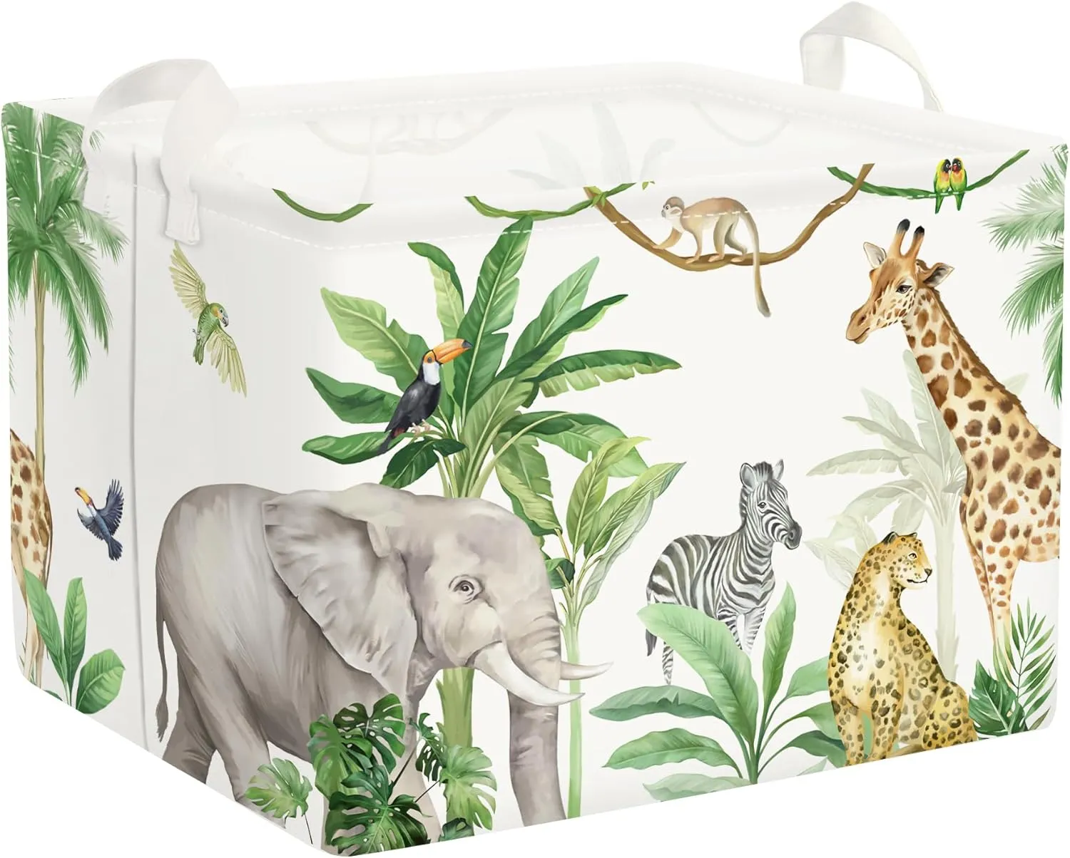 Panier de rangement - motif girafe - polyester - rectangulaire - style ethnique