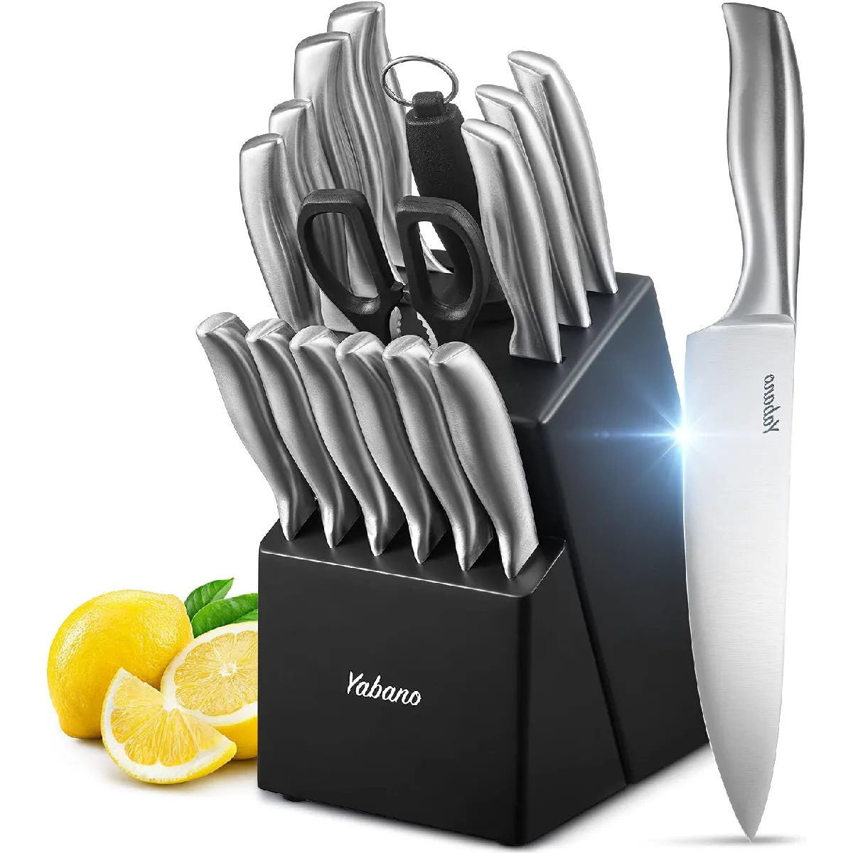 Vendos85 Set de 16 Couteaux Cuisine en Acier Inoxydable avec Support en Bois |