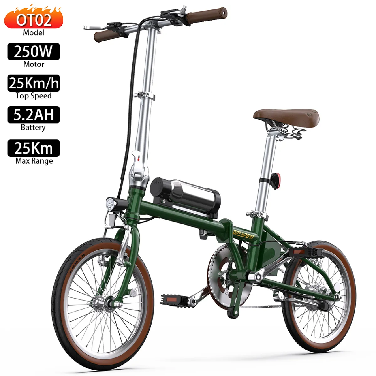 Vélo électrique Pliable Onesport OT02 Moteur 250W Vélo électrique Urbain 36V 5.2AH Autonomie Maximale 25Km Charge Max 80Kg Vert