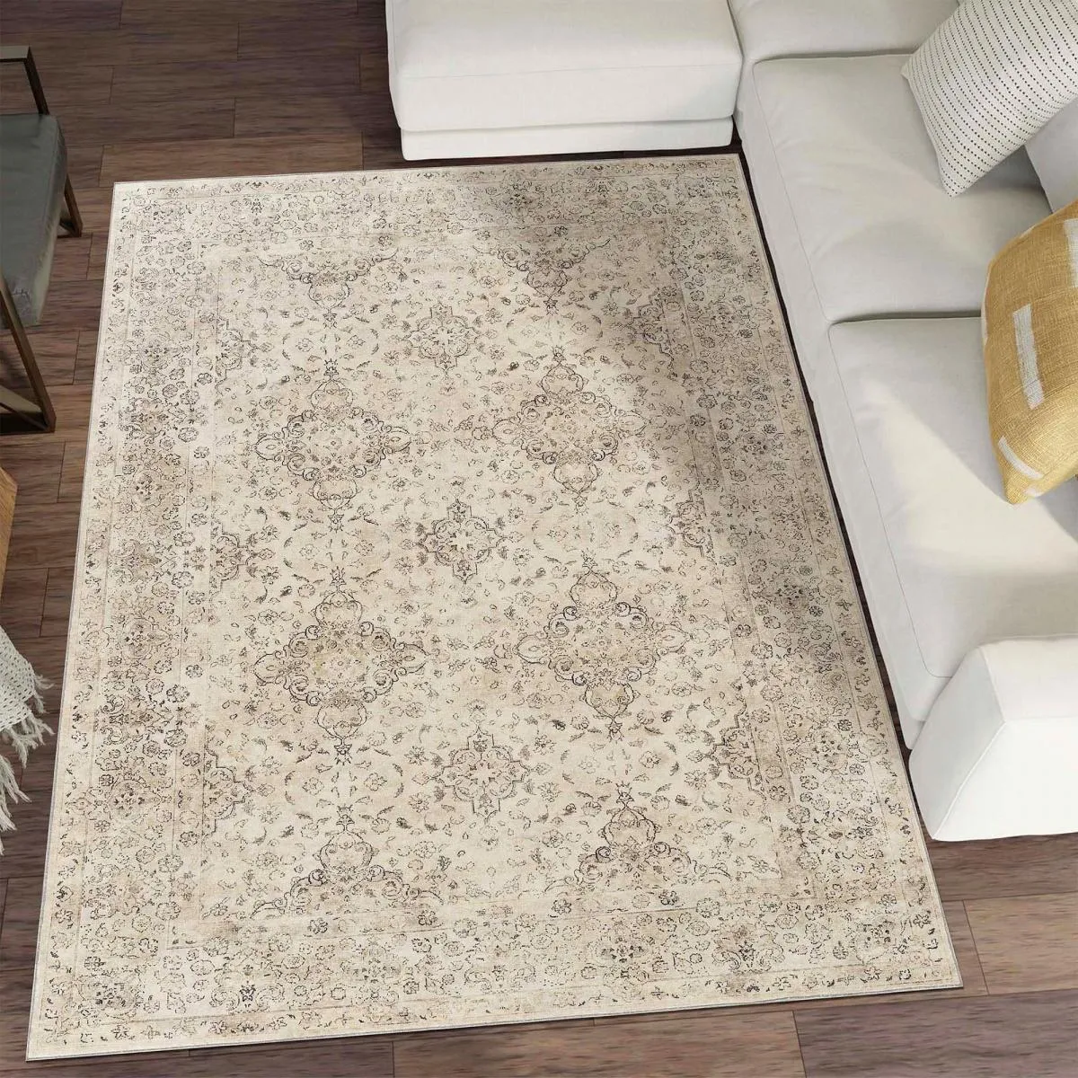 UnAmourDeTapis Tapis salon 150 x 220 cm beige, gris, kilim vintage, motif oriental, charme authentique |