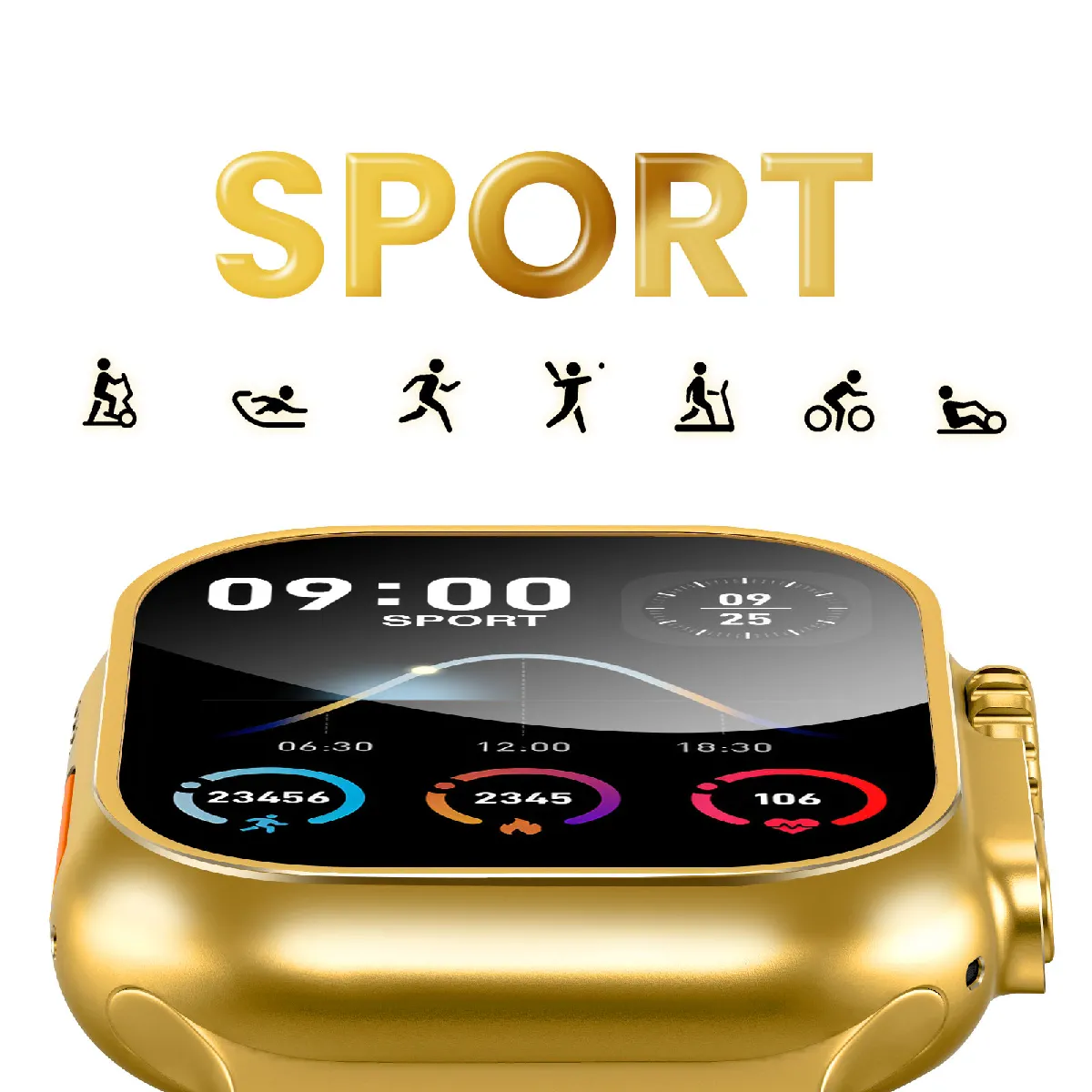 La montre connectée Hoco Y12 Ultra dorée offre un grand écran 1,96 pouce, des appels Bluetooth et une autonomie jusqu'à 6 jours