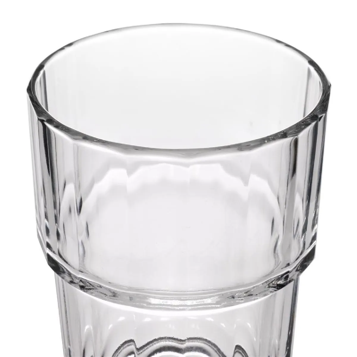 Gobelet entièrement en verre trempé, empilable, résistant. Parfait pour les établissements très fréquentés.