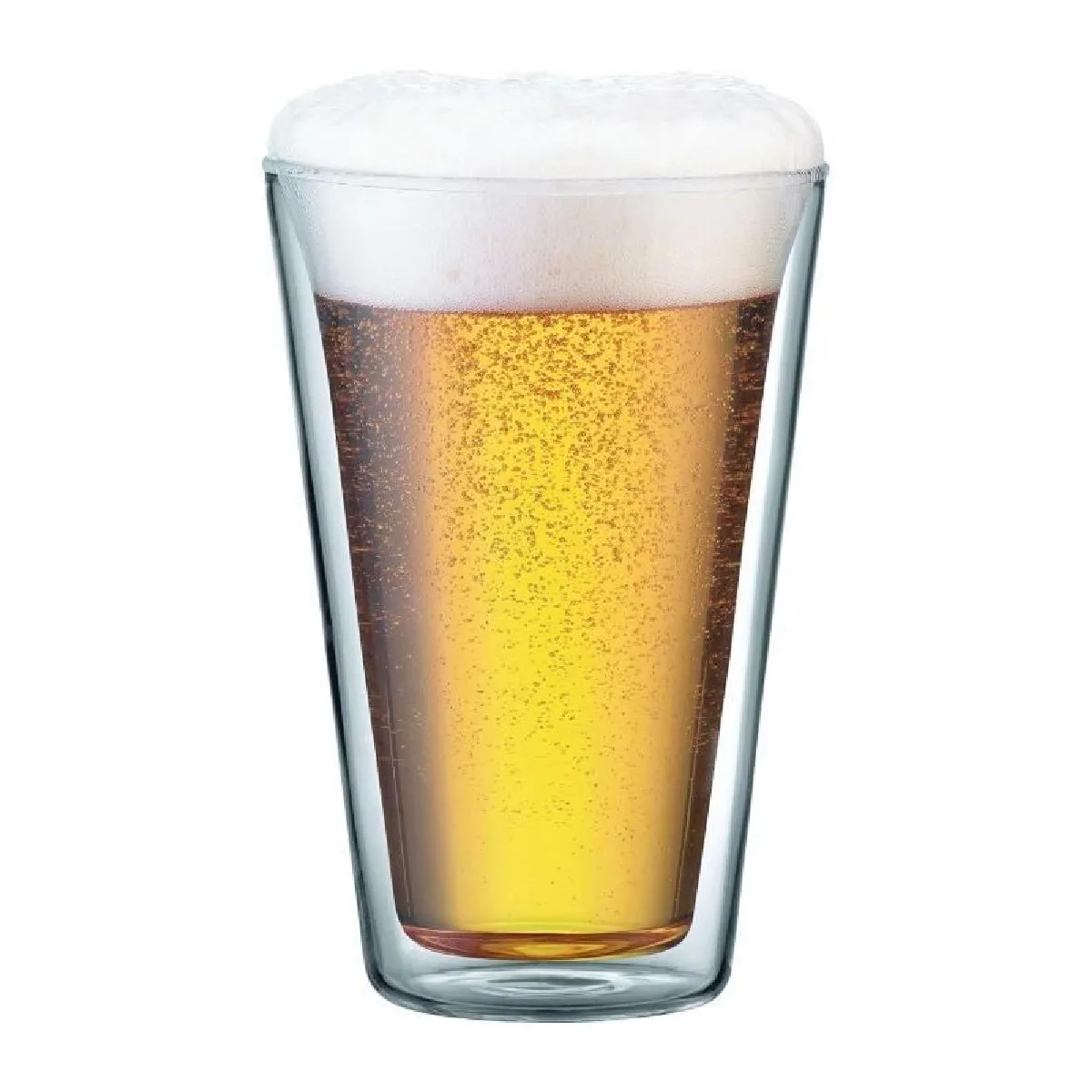 - Verre borosilicate soufflé bouche, double paroi isolante