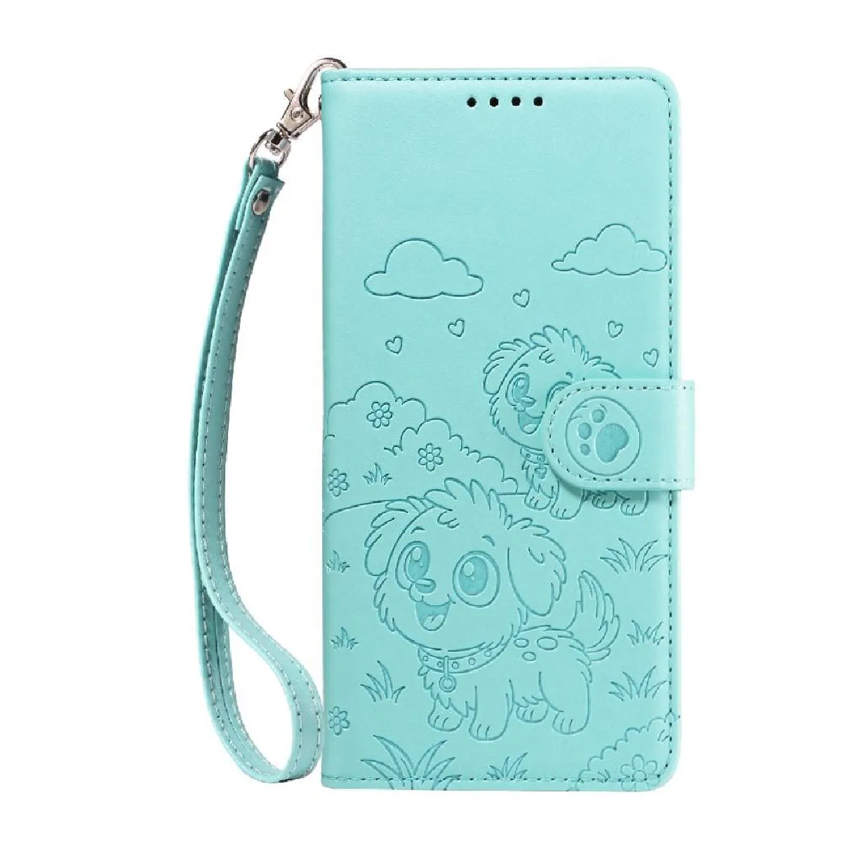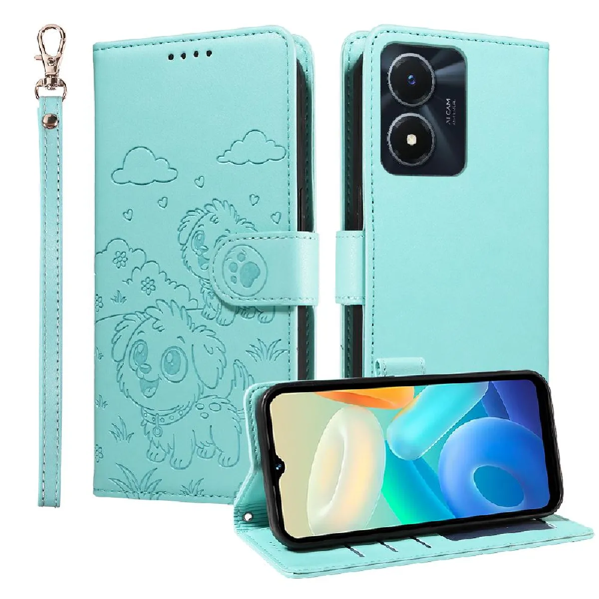Étui Pour VIVO Y02S Sangle de poignet Supports de fente pour carte Poche Cuir Chien en relief Vert |