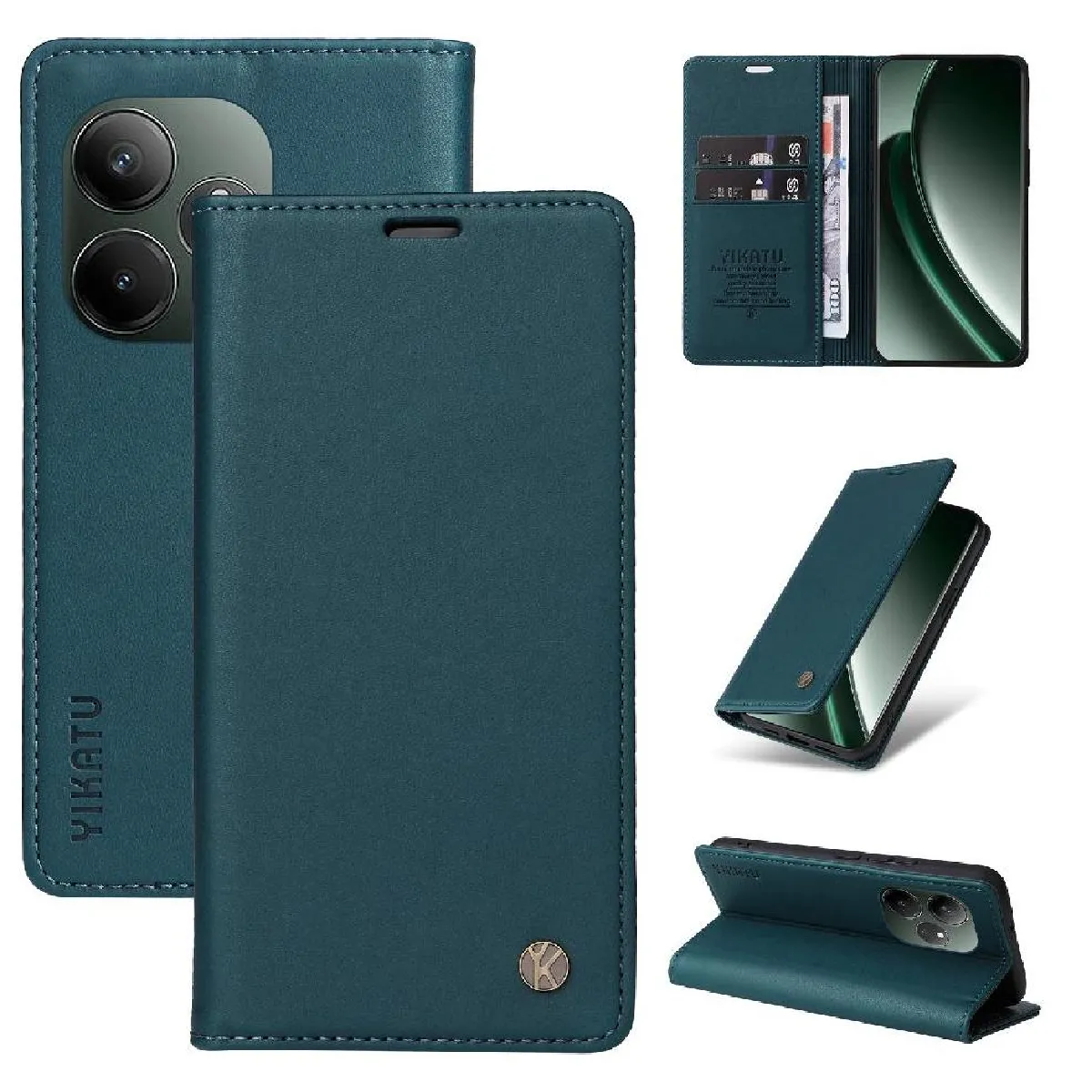 Flip Étui Pour Realme GT 6 Attraction magnétique forte Et Stand Fonctionnalité Faux cuir et TPU entièrement mat Avec Fentes à cartes Bleu |