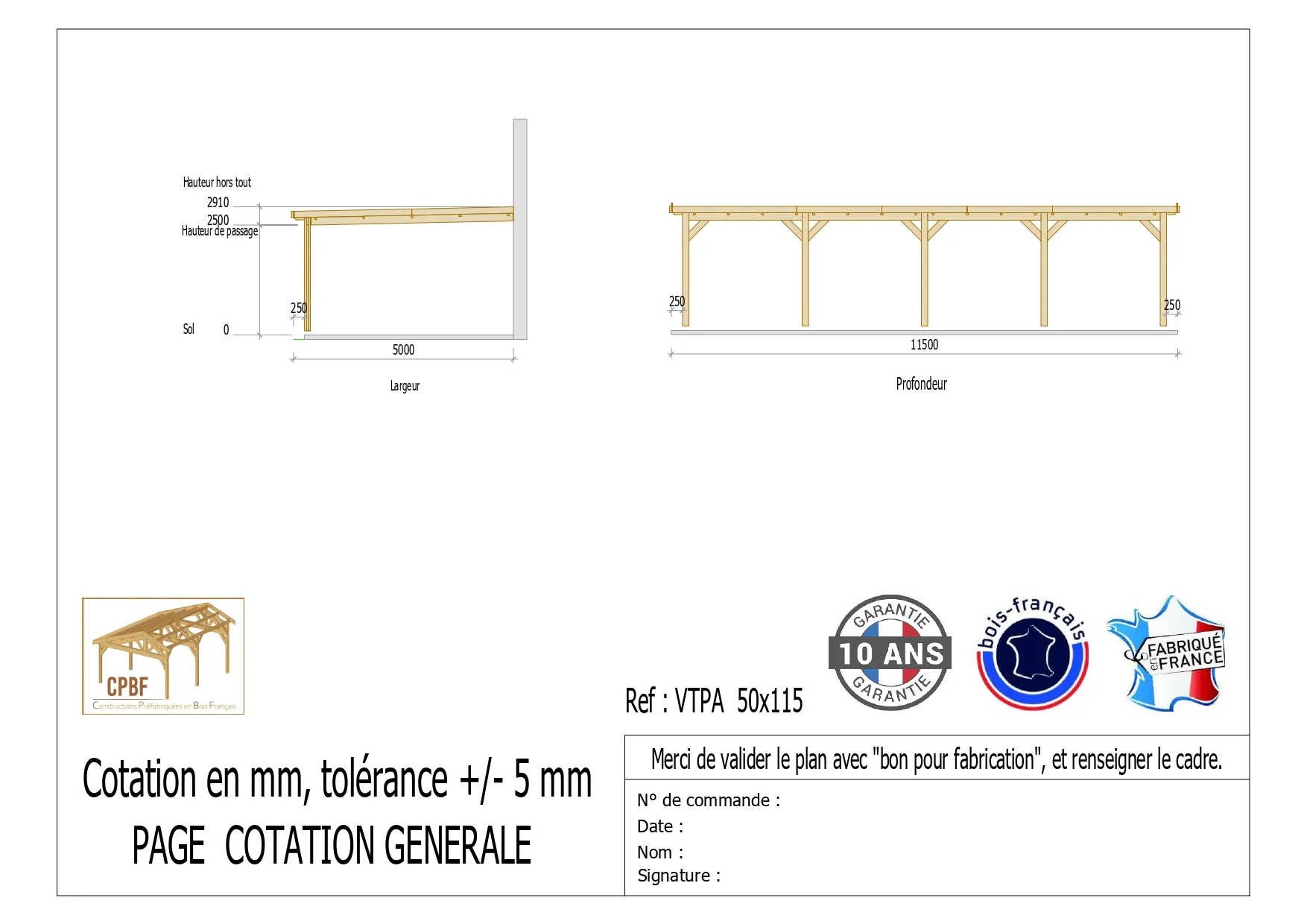 Commentaire vendeur : Charpentes fabriquées par l’entreprise CPBF qui est implantée dans le sud-ouest en Lot et Garonne (47). Bois DOUGLAS issu de nos forêts françaises. Dimensions et descriptif sous format photo ci-dessus. Charpentes traditionnelles moisées. Fourni avec : dossier technique complet (fiches conseils, fiches de montage, plan de préparation du sol), quincaillerie d’assemblage. Possibilité de fermer totalement ou partiellement les côtés de votre abri par vos soins. IMPORTANT : Pour le meilleur tarif, la livraison s'effectue en poids lourd 38T (accessibilité validé auprès des services techniques de la commune de livraison) et le déchargement est réalisé par vos soins, dé-palettisation (environ 30 minutes, prévoir 3 personnes).