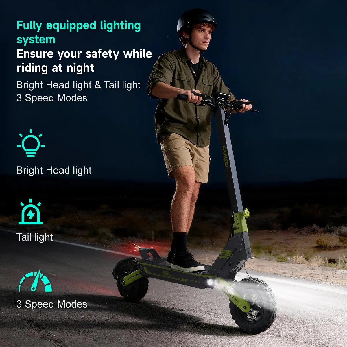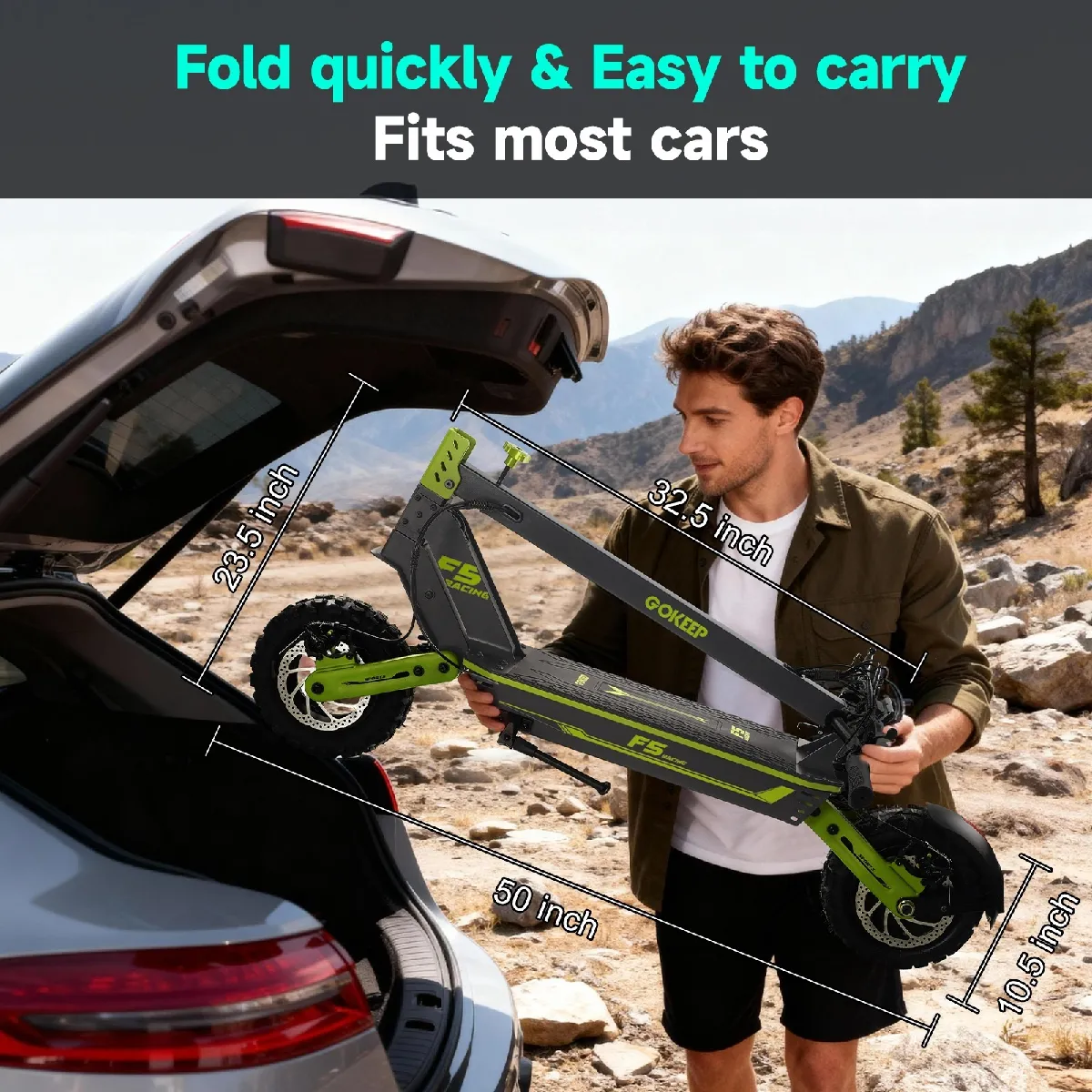 Trottinette électrique pliable GOKEEP F5, 11 pouces, batterie 52 V 20 Ah, verte