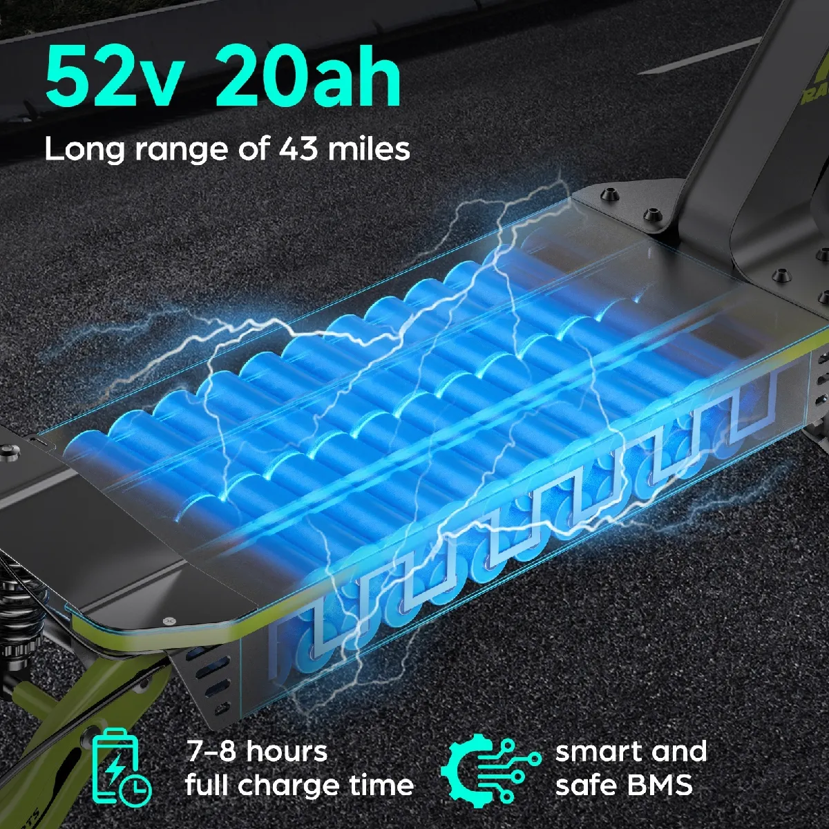 - Autonomie de 70 km et batterie performante de 52 V et 20 Ah