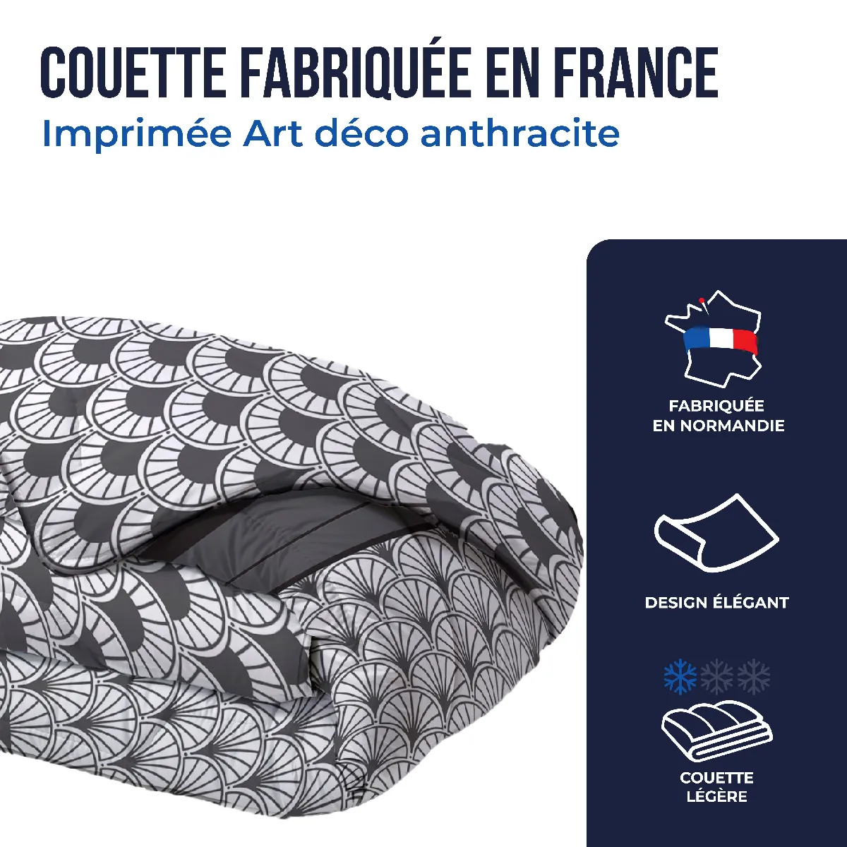 Pourquoi choisir la couette légère imprimée art déco anthracite Colas Normand ?