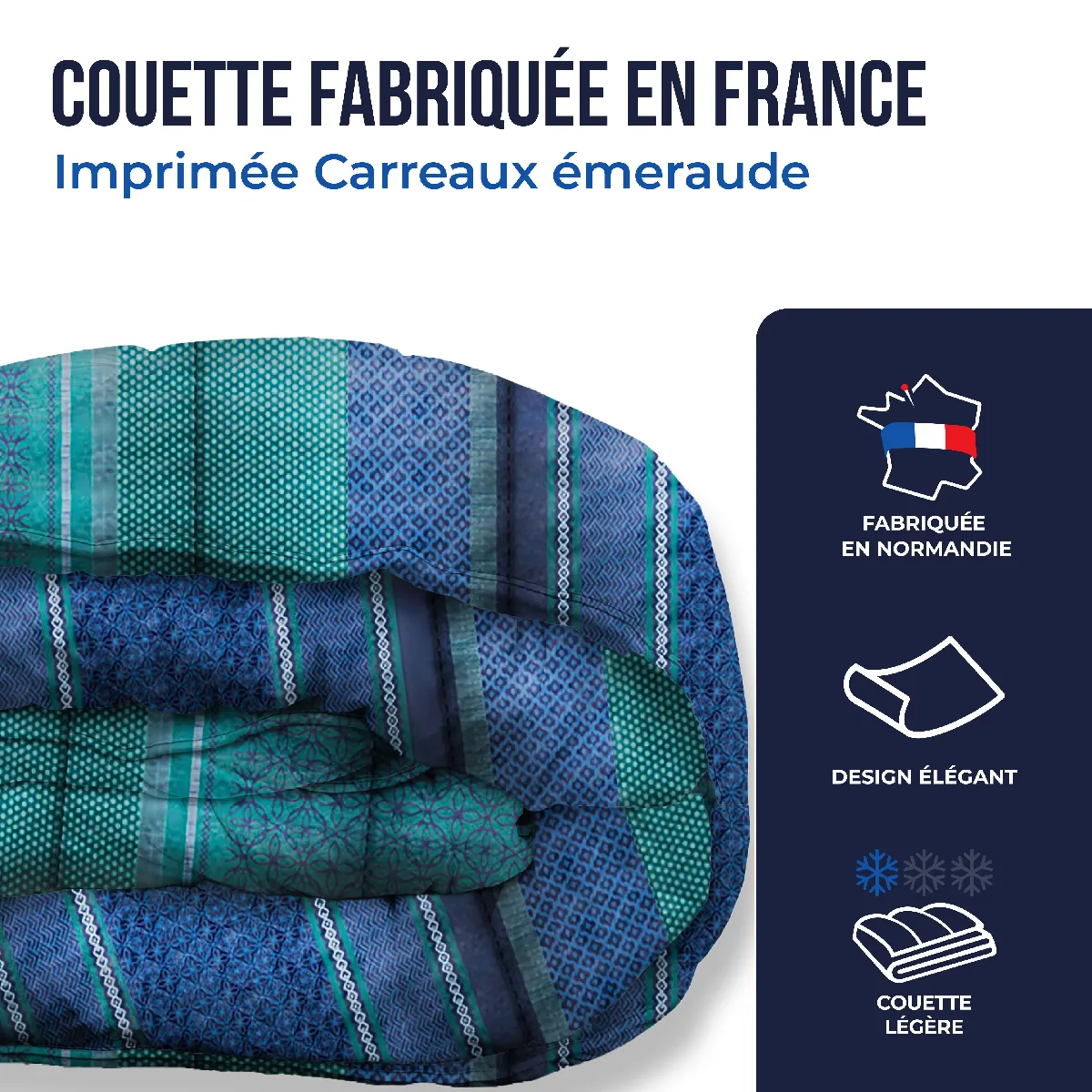 Pourquoi choisir la couette légère imprimée carreaux émeraude Colas Normand ?