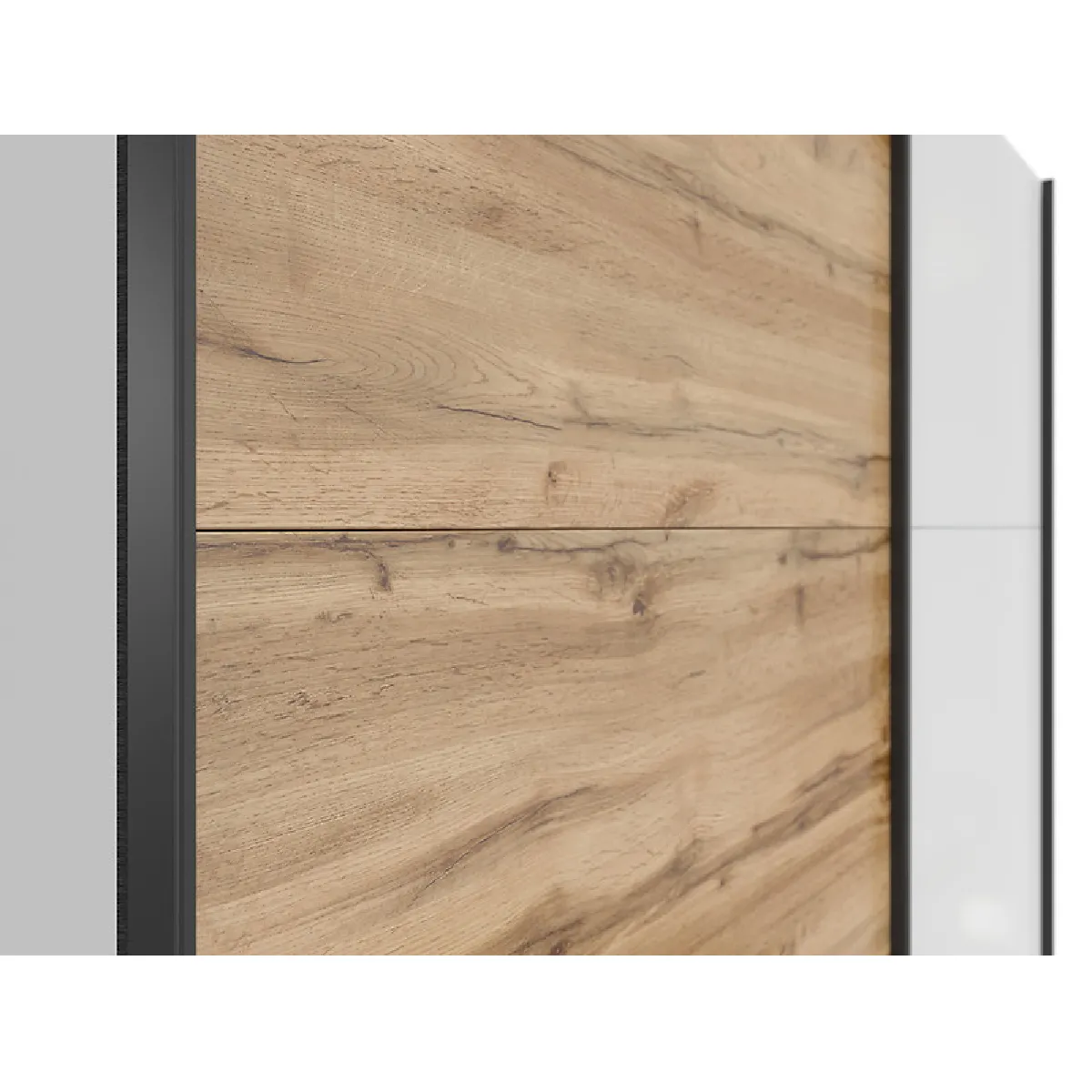Ces étagères sont coulissantes : elles se retirent aisément pour dégager la hauteur utile et optimiser la zone de suspension des vêtements longs. L'ensemble repose sur des matériaux adaptés à un usage domestique, avec une finition mélaminée simple d'entretien. Le style moderne Blanc brillant/Chêne wotan s'intègre à différents décors, tout en mettant en avant une façade épurée à lignes continues. Avec une profondeur de 60 cm, l'armoire accueille cintres standards sans gêner la fermeture, et son format 183 cm de large propose un rangement bilatéral rationnel.
