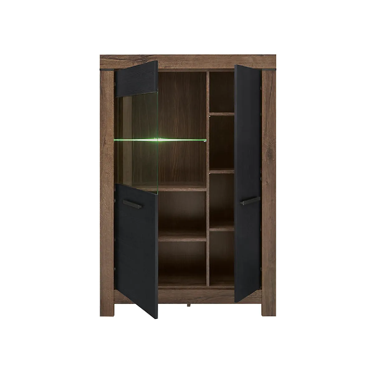 Vitrine-bibliothèque à 2 portes avec éclairage LED, coloris chêne