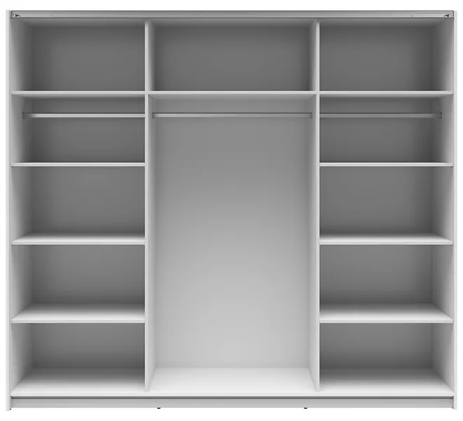 L'aménagement combine 3 barres pour cintres et 3 étagères supérieures profondes pour accueillir manteaux, robes ou boîtes. Les 6 étagères supplémentaires sont coulissantes, ce qui libère rapidement de l'espace de suspension selon les besoins. Cette configuration permet d'alterner entre zones pliées et suspendues, pour une visibilité claire et un tri efficace des tenues de saison.