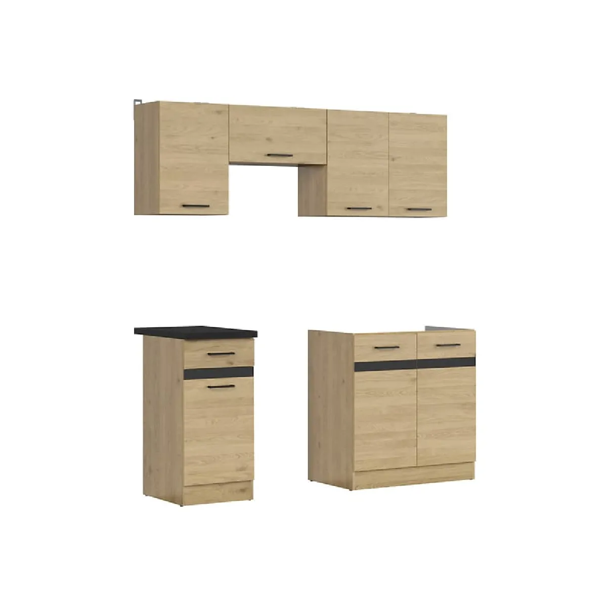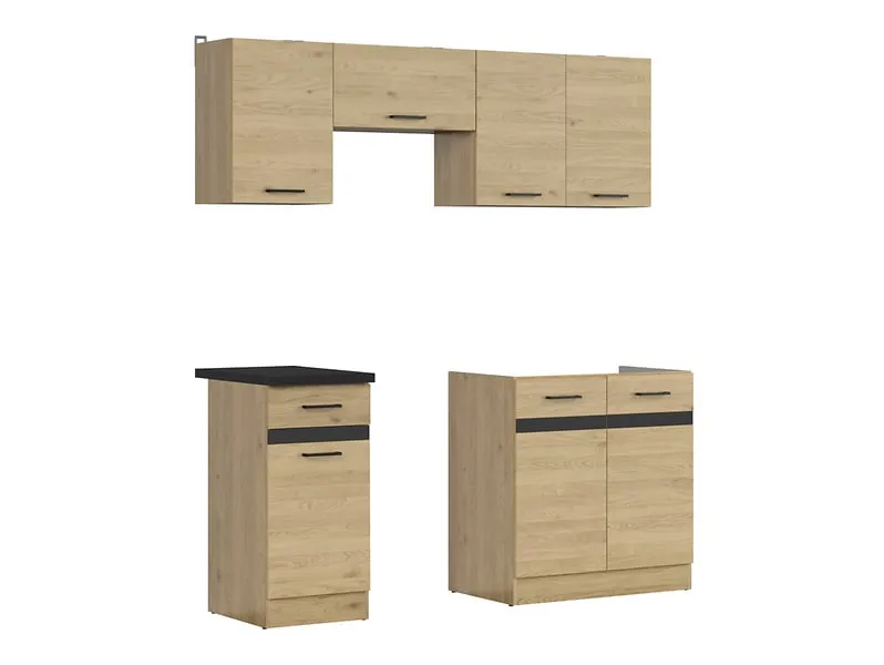 Cuisine complète 180 cm coloris chêne berstein avec plan de travail noir