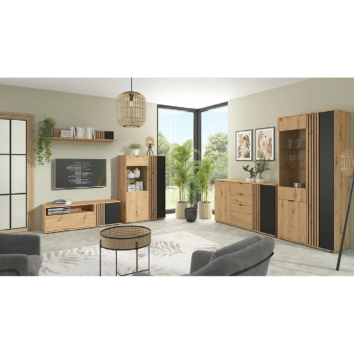 Un meuble unique pour ranger et exposer en toute discrétion, grâce à ses façades pleines aux lignes soulignées par des lattes en MDF. Les dimensions équilibrées permettent d'optimiser un salon ou une salle à manger sans encombrer l'espace, tout en offrant une surface utile pour organiser livres et vaisselle. La structure en panneaux de particules mélaminés assure une apparence homogène coloris chêne, facile à intégrer dans divers intérieurs. Les accessoires sélectionnés, dont le verre trempé et les poignées en plastique, contribuent à une utilisation pratique au quotidien, avec des surfaces mélaminées résistantes aux rayures pour préserver l'esthétique au fil du temps.