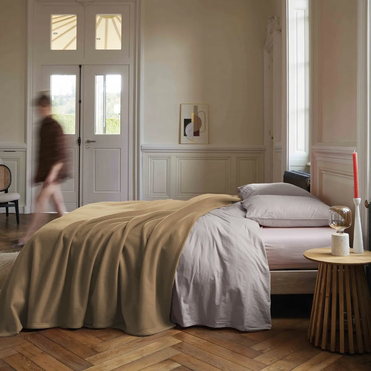 Le confort immédiat provient d'une polaire moelleuse et gonflante qui diffuse une chaleur régulière sans alourdir. Avec son coloris sable, ce modèle s'intègre facilement dans la chambre tout en apportant une surface au toucher très doux. La structure en polyester favorise une bonne tenue dans le temps et une élasticité appréciable pour les usages quotidiens sur lit 2 places. La finition ourlée double piqûre renforce les bords pour limiter l'usure liée aux manipulations et aux lavages répétés. Sa construction 350 g/m² répond aux besoins des nuits fraîches, en complément d'un drap ou d'une couette selon la saison.