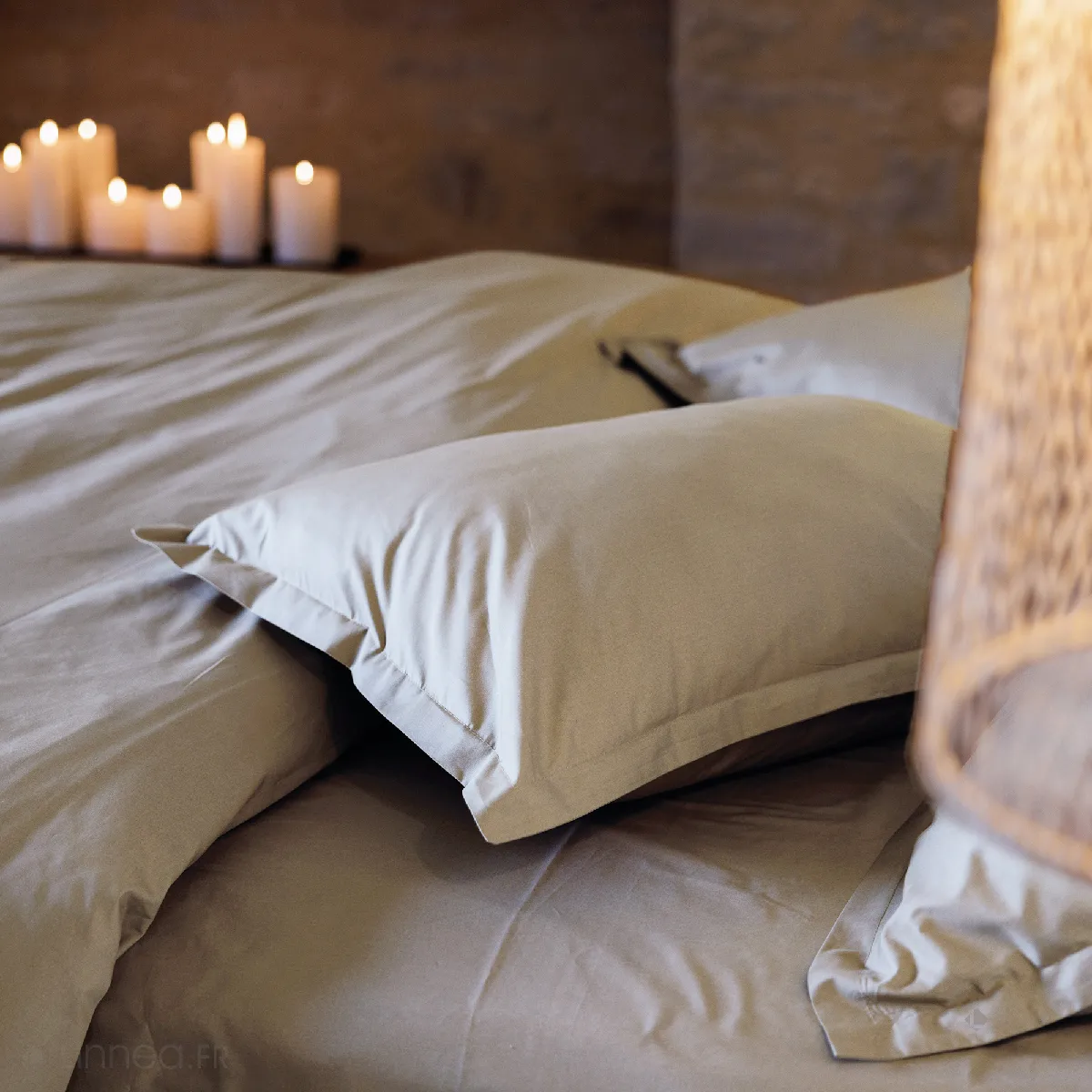 Le coton longues fibres peignées favorise une résistance homogène et un toucher plus soyeux. La teinte unie beige permet de composer facilement une parure coordonnée selon vos besoins. La température de lavage max 60°C répond aux usages courants tout en aidant à préserver l'aspect de la percale au fil des lavages. Le tissage plat et la finition à volants plats de 3 cm apportent une présentation nette sur le lit, adaptée à une utilisation régulière.