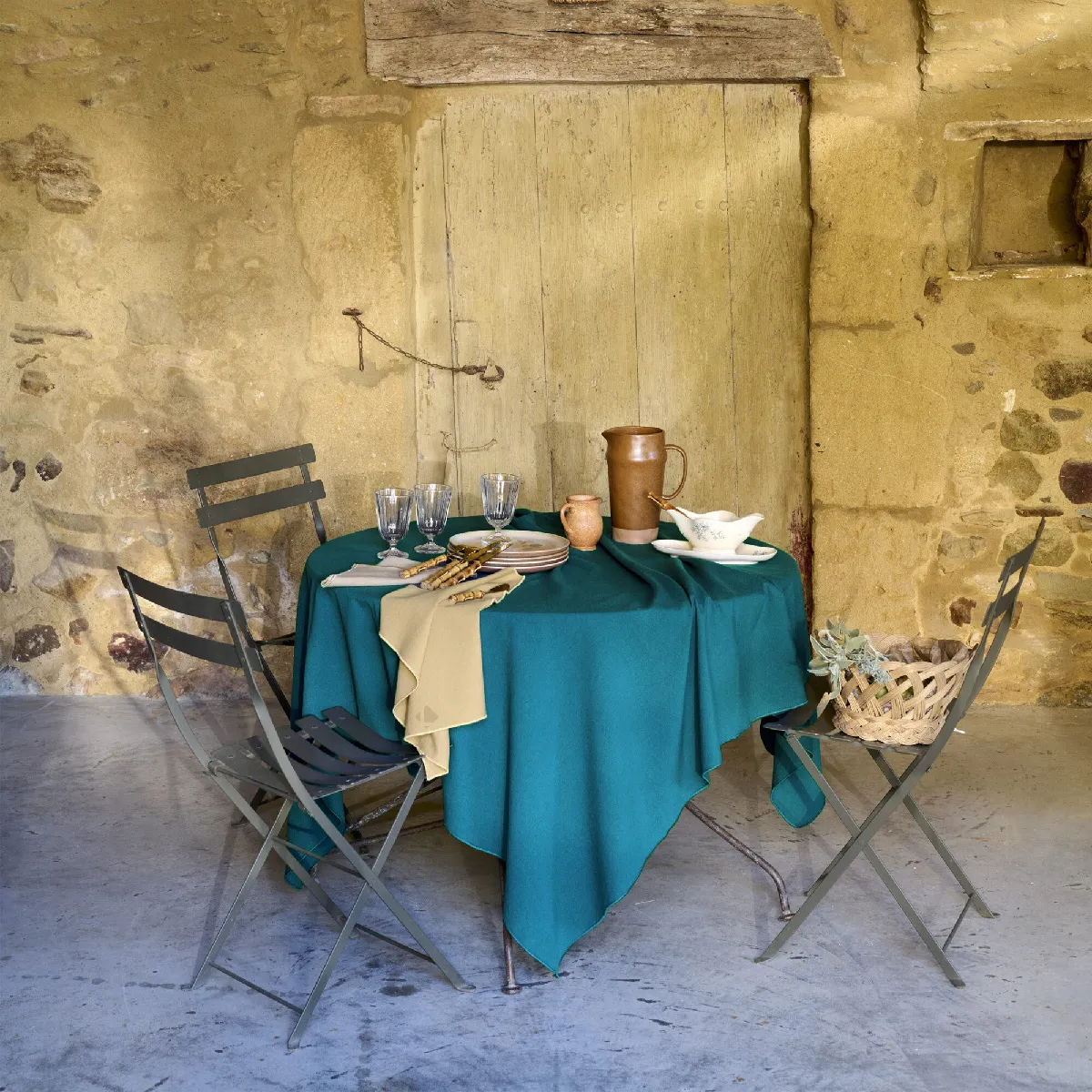 La nappe offre une surface uniforme en coton lavé au coloris bleu lagon, adaptée aux tables carrées pour un usage intérieur. Sa finition point bourdon discrète met en valeur la teinte et s'intègre facilement dans une cuisine ou une salle à manger. La matière naturelle en coton procure un toucher agréable et un tombé régulier, pratique pour des repas familiaux comme pour recevoir. Proposée en dimension 160 x 160 cm, elle couvre une table carrée standard et crée un rendu soigné sans surcharge visuelle.