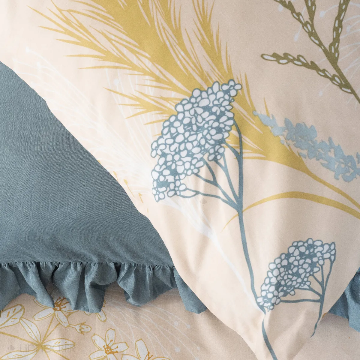 La parure comprend 3 pièces : une housse de couette et deux taies 63 x 63 cm assorties. Le coton facilite l'entretien au quotidien, avec un lavage en machine à 40 °C adapté à une rotation régulière du linge. La teinte beige et le décor végétal préservent un style discret, facile à coordonner avec des draps unis. L'ensemble se destine à une utilisation courante et combine respirabilité du coton et aspect décoratif pour une chambre soignée.