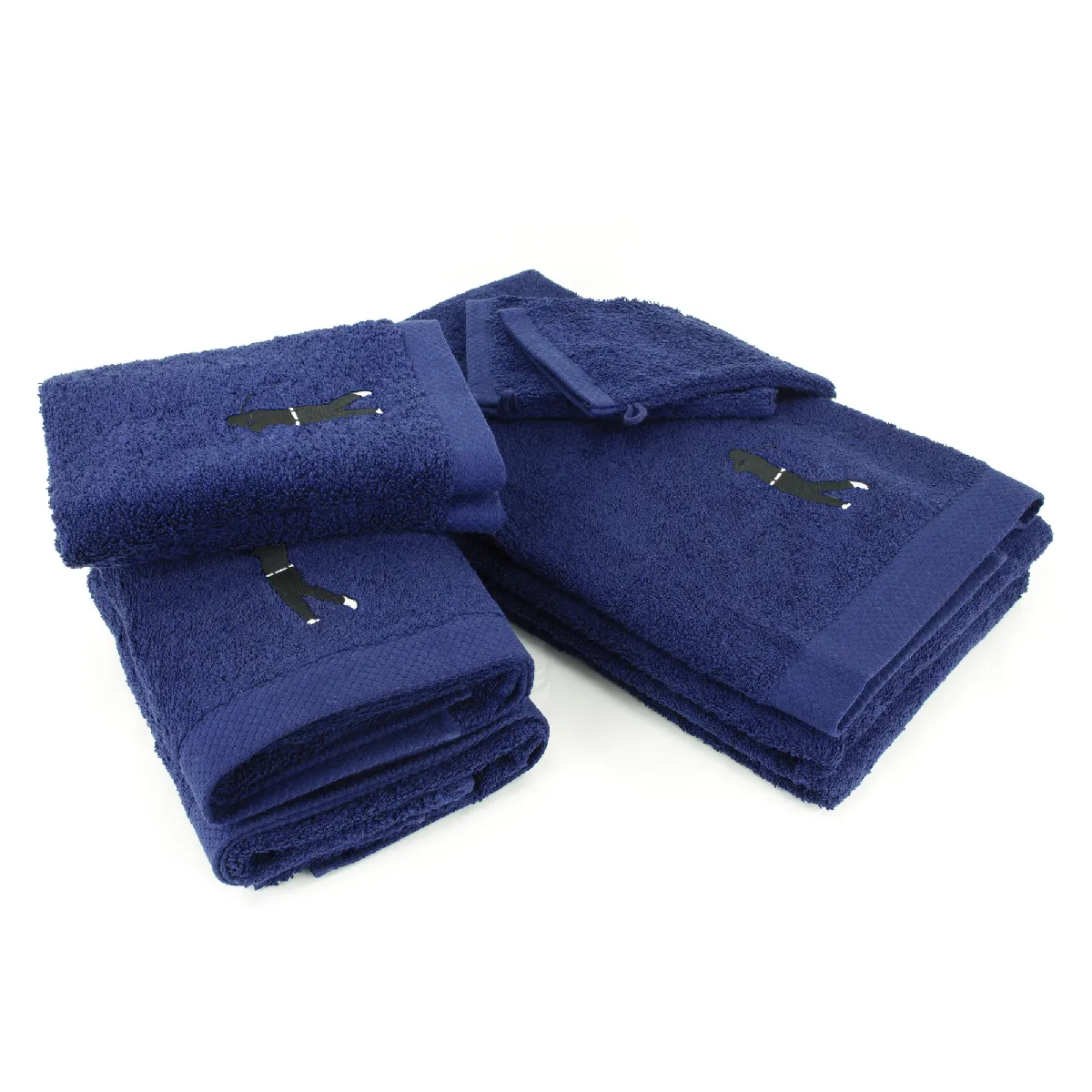 Parure de bain éponge 8 pièces - Coton cardé 550 g/m² - Broderie joueur de golf - Liteau jacquard - Fabriqué au Portugal - Lavable 60 °C
