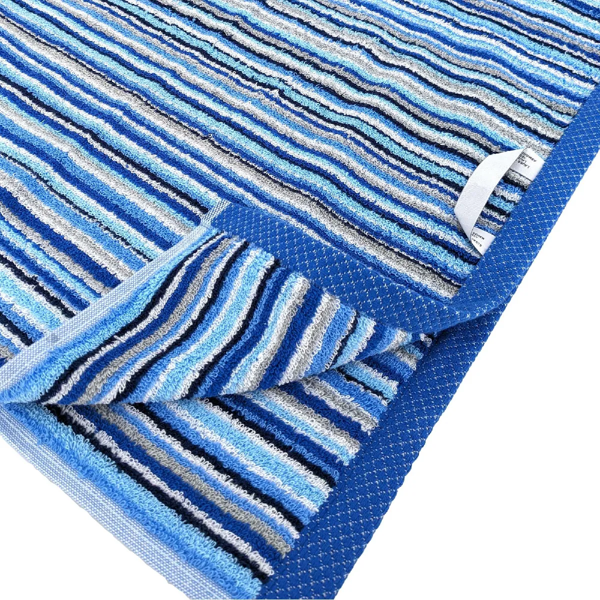 Drap de bain en coton rayé - 500 g/m² - Fils simples - Collection Pure Stripes II - Bleu - Certifié OEKO-TEX